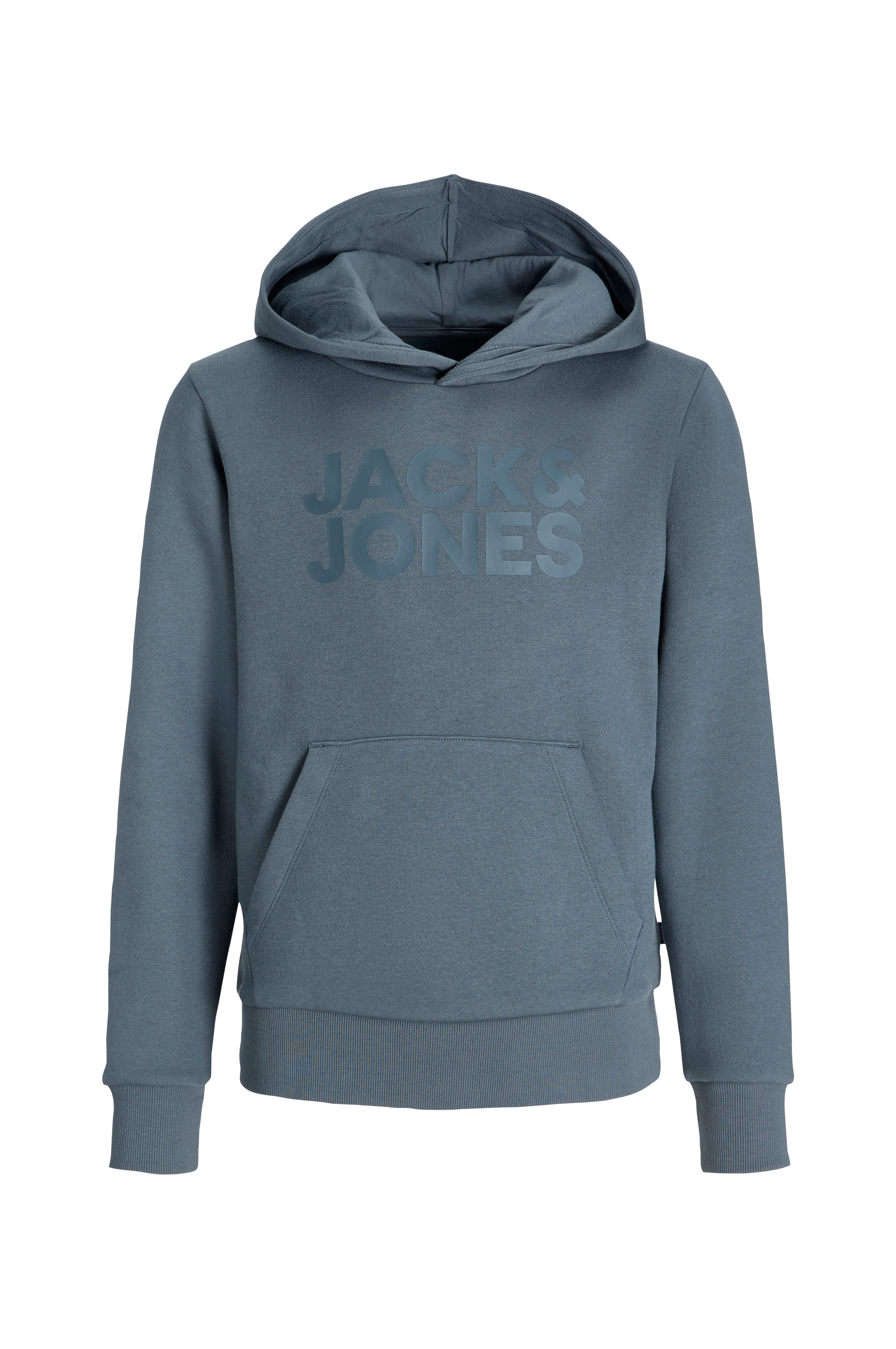 Hættetrøje jjeCorp Logo Sweat Hood fra Jack & Jones med blød, børstet inderside. Hætte med dekorative bånd på siderne. Print foran og kængurulomme. Rib i ærmekant og forneden.