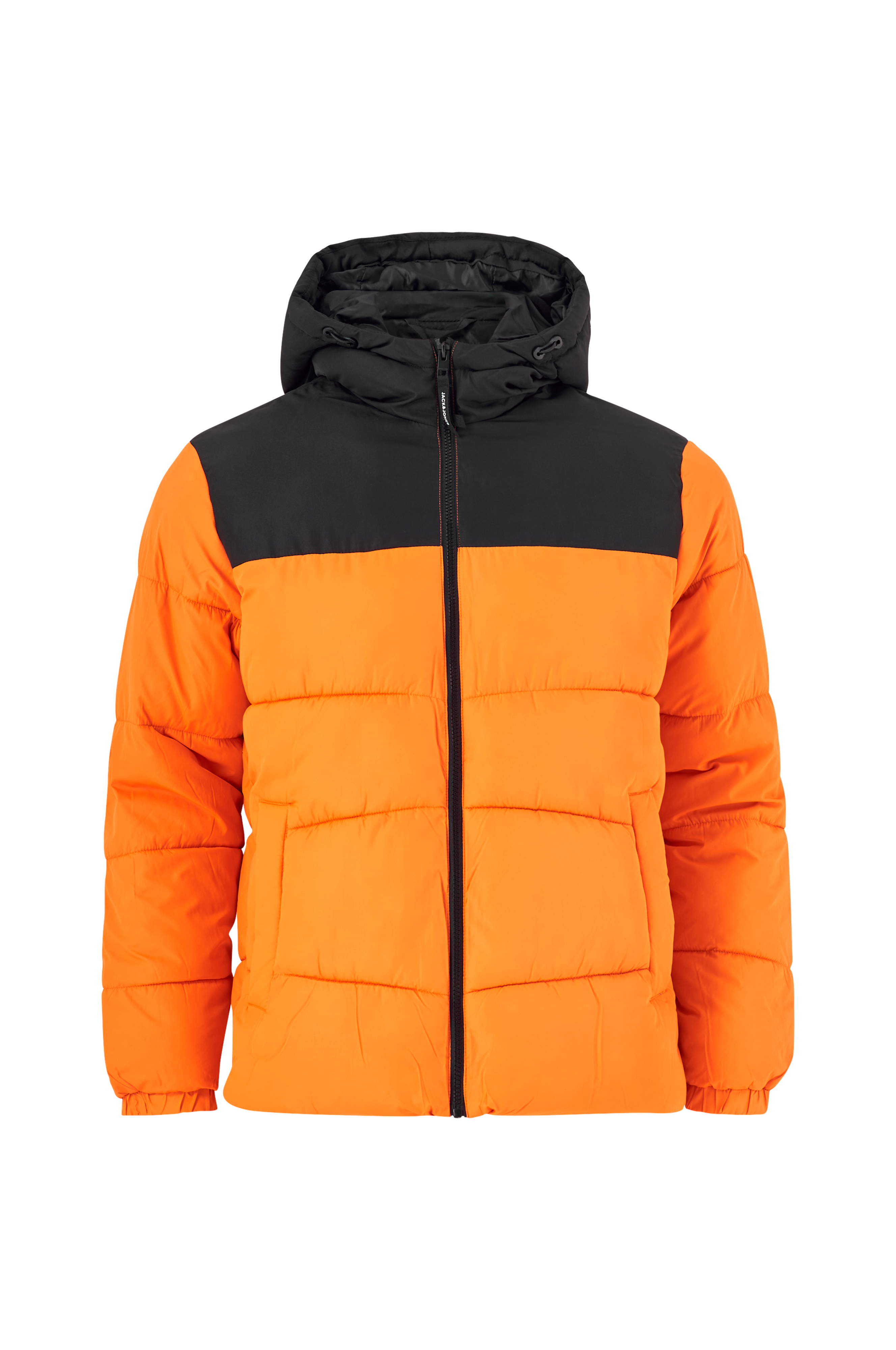 Quiltet, vatteret jakke. Fast hætte med løbegang. Lukning med lynlås. To sidelommer og inderlommer. Elastik i ærmekanten.