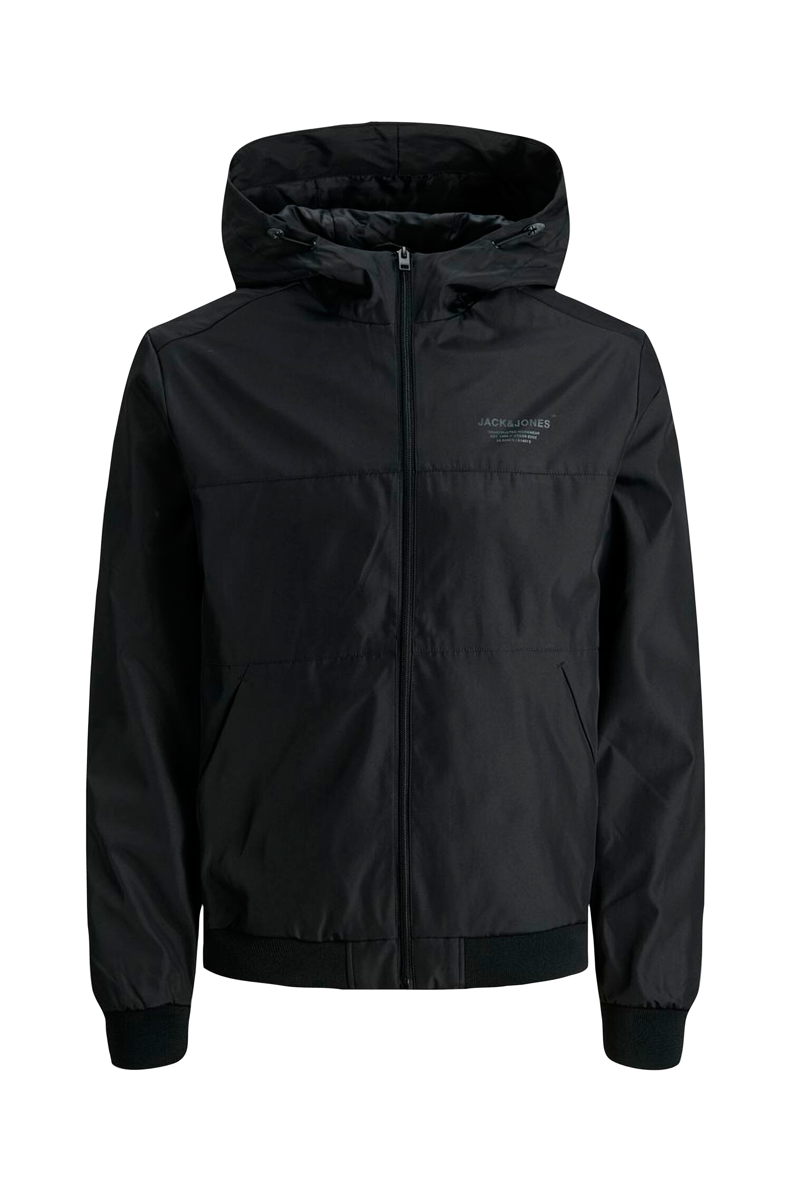 Jakke i let, vævet kvalitet. Hætte med løbegang. To yderlommer og en inderlomme. Ribkanter i ærmekanten og kanten forneden. Printet logo på brystet. Længde ca. 68 cm i str. M.
