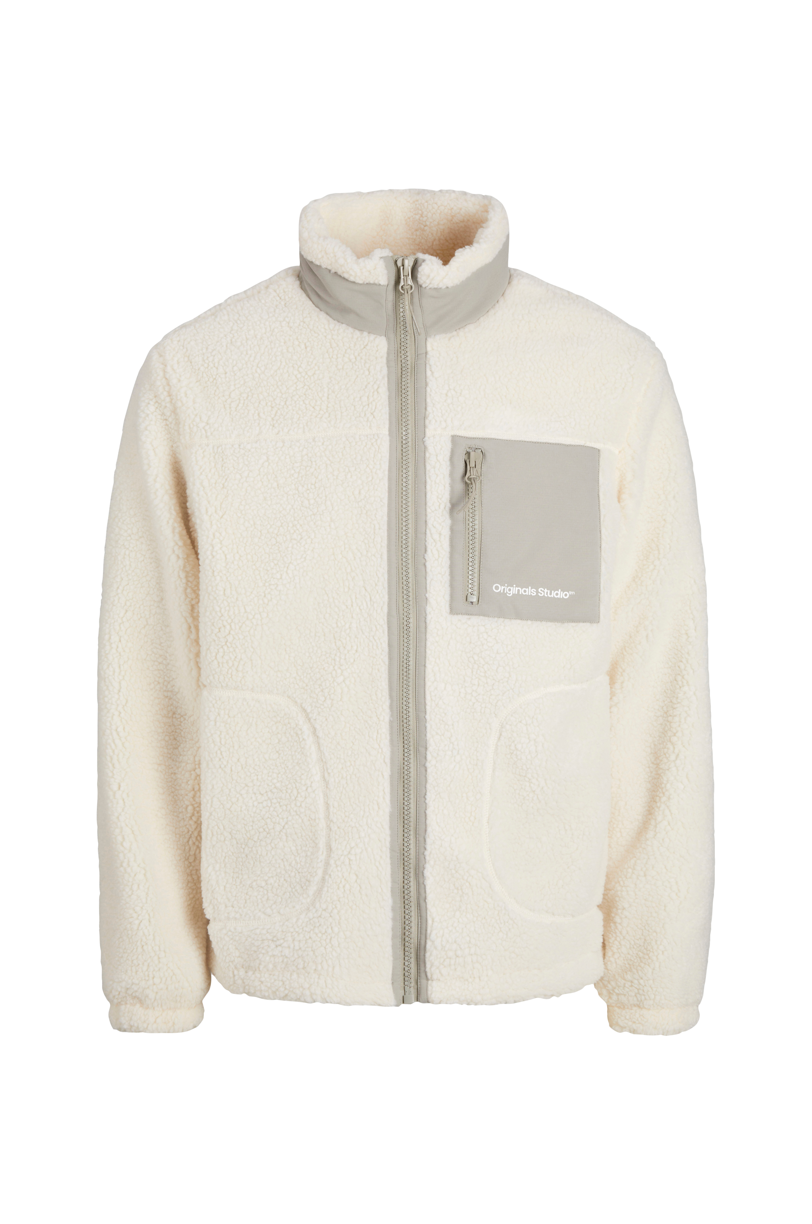 • Jakke i teddy• Lynlås• Opretstående krave med vævet indlæg• To lommer• Vævet brystlomme med lynlås• For i mesh• Elastik ved ærmeafslutningerne• Længde: 70 cm i størrelse M