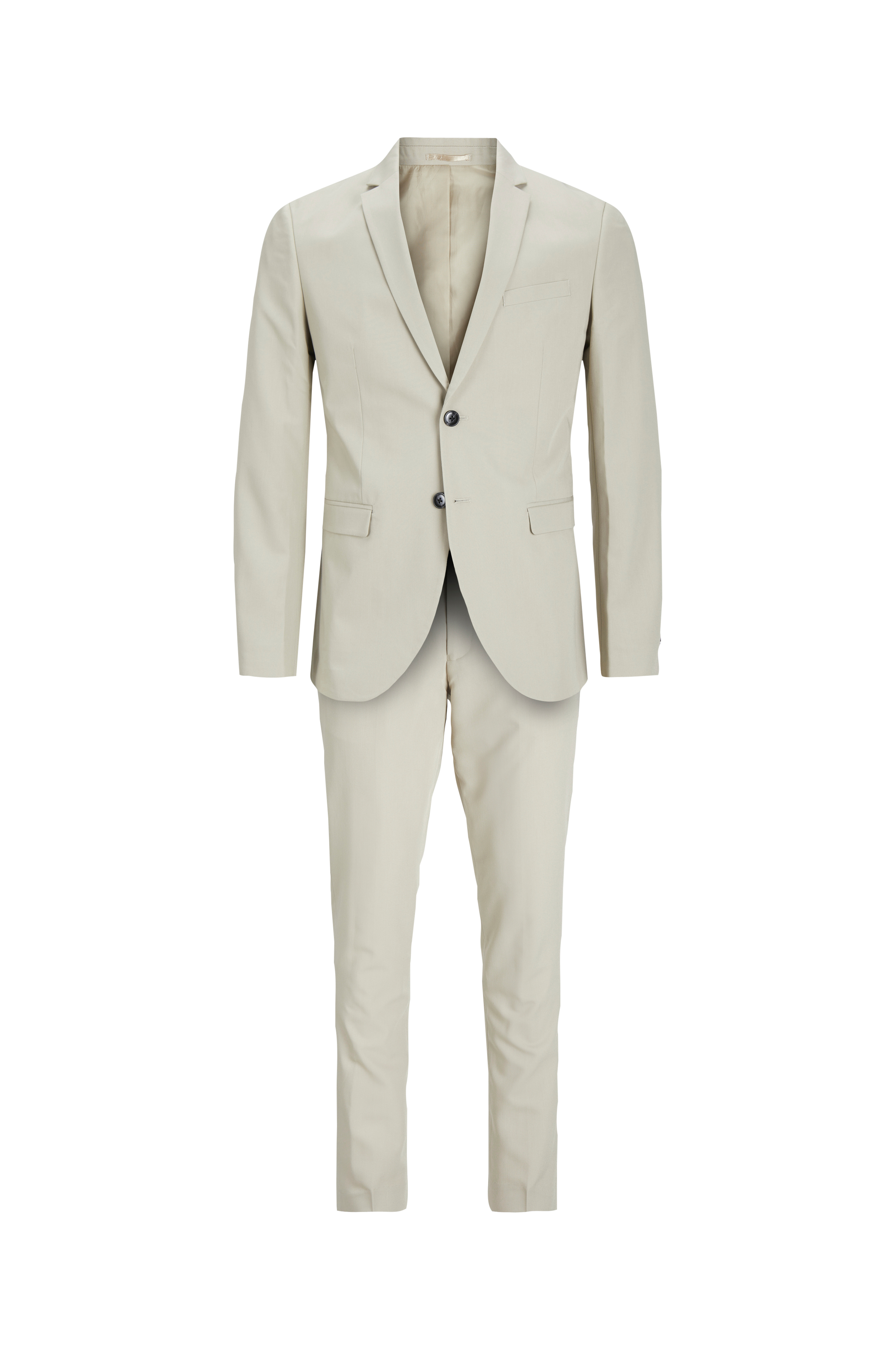 Todelt jakkesæt i klassisk design med supersmal pasform. Blazer med to knapper. Fire pynteknapper i ærmekanten. To lommer med lommeklap og en brystlomme. To inderlommer med knap. To slidser forneden bagpå. Længde ca. 75 cm i str. 50. Bukserne har sidelommer og baglommer. Gylp med lynlås. Indvendig benlængde ca. 78 cm i str. 48.