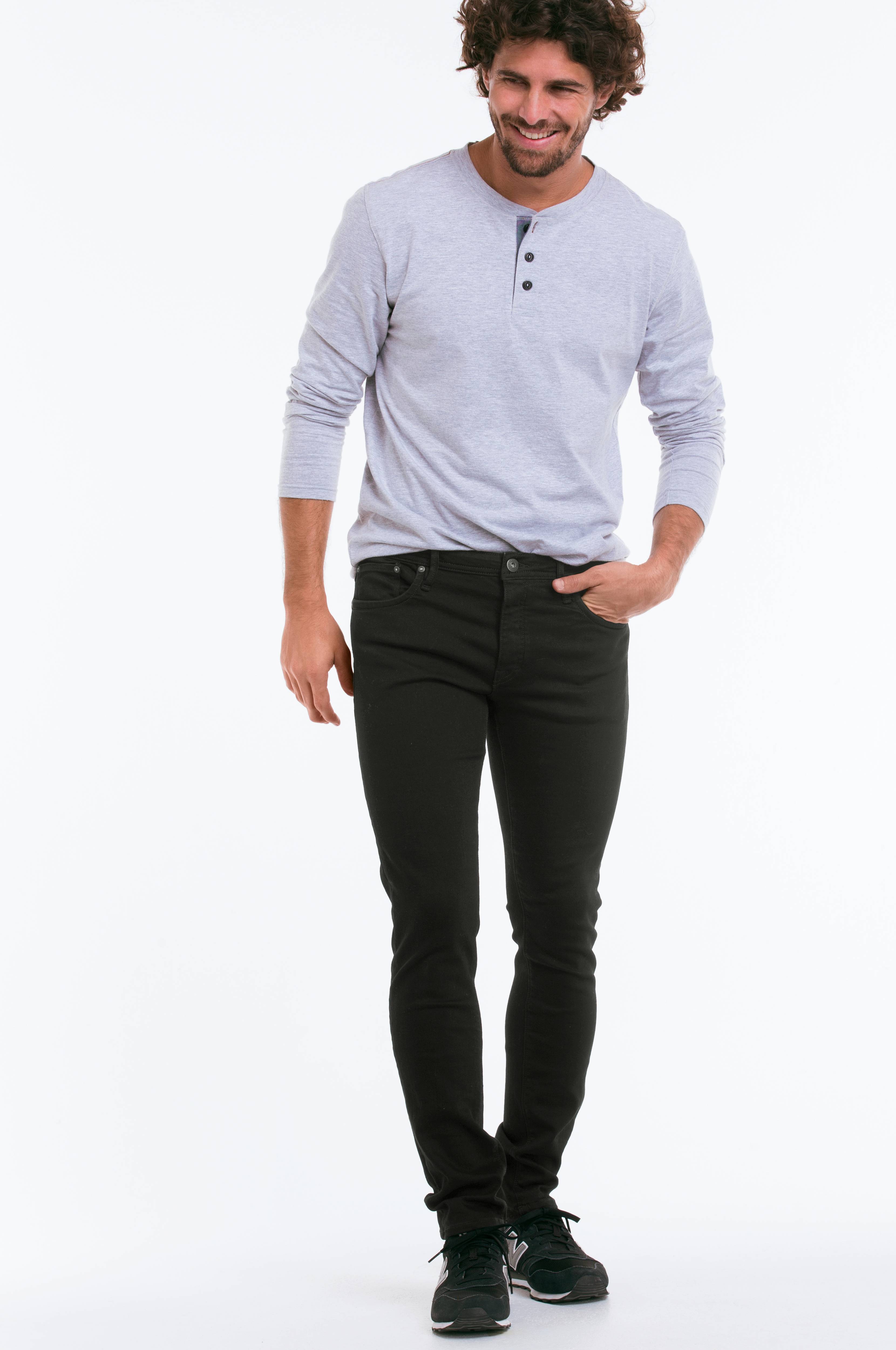 Jeans Glenn Felix Am 046 fra Jack & Jones i strechdenim. Smal model med lavt skåret talje, smalle lår og smal benkant. Knapper i gylpen og tre lommer foran samt to lommer bagpå.