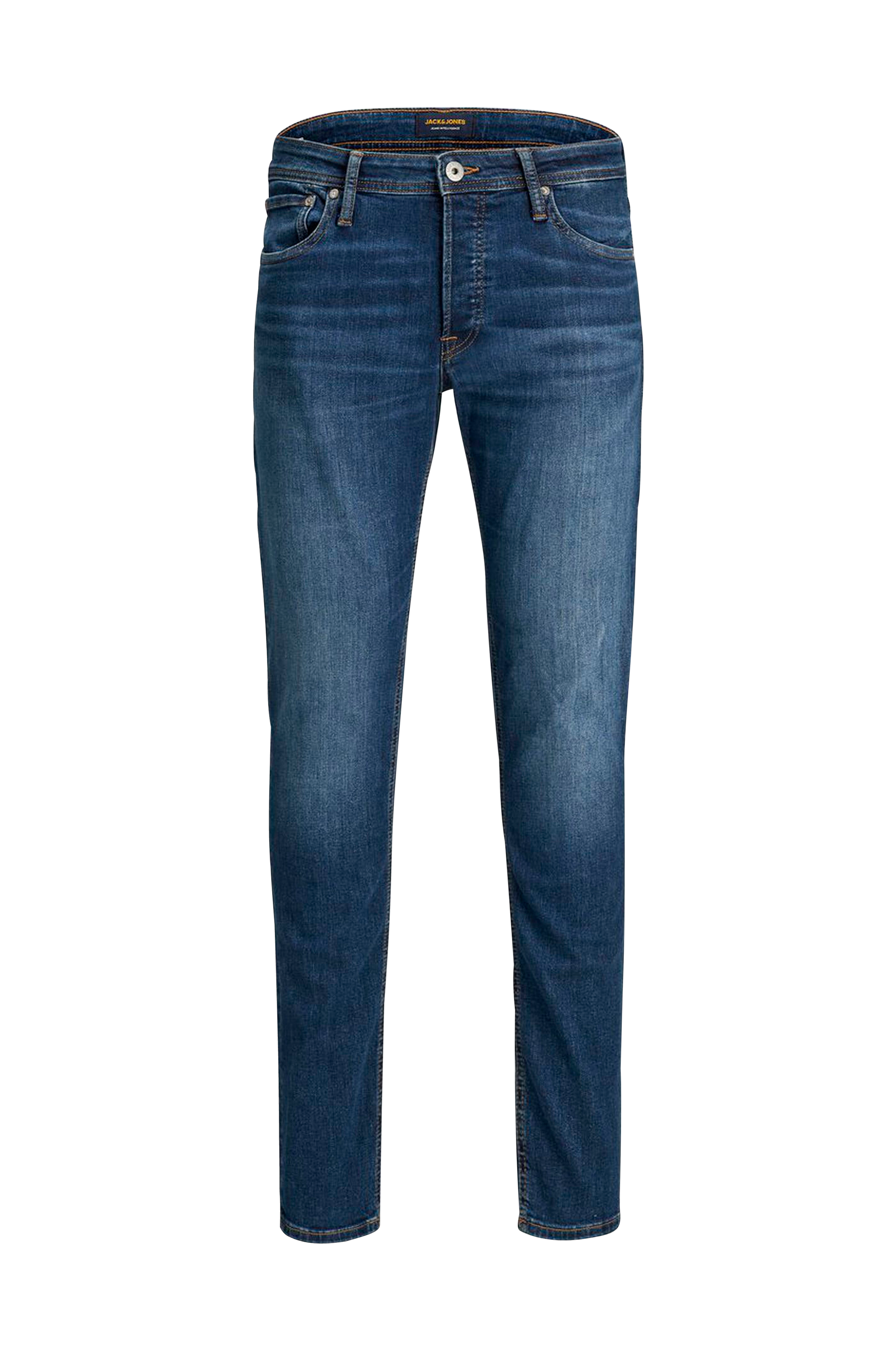 Jeans jjiGlenn jjOriginal Am 814 fra Jack & Jones. Model Glenn med lav talje og smal pasform over lår og knæ og lige snit. Fem lommer og knapgylp.
