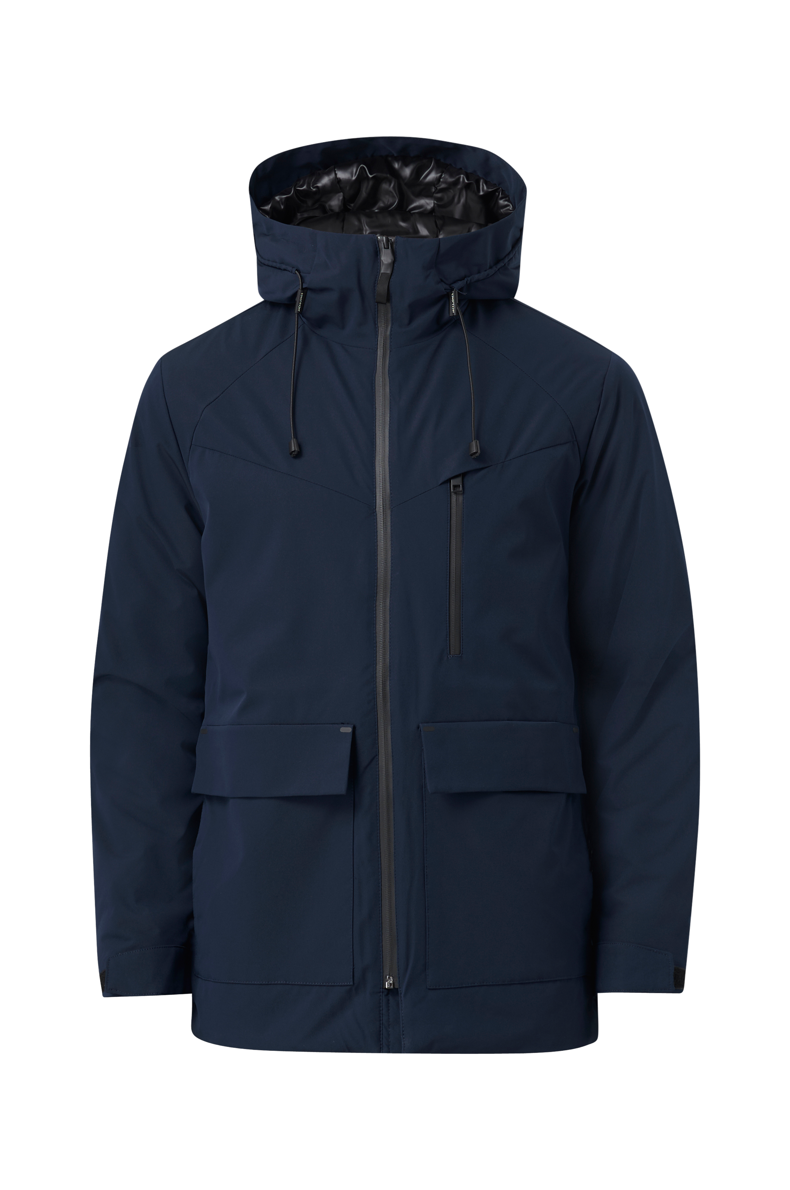 • Let foret parka • Fast hætte med træksnørre • Træksnørre • To lommer med en velcrolukning • En brystlomme med lynlås • En inderlomme • Justérbare ærmeafslutninger • Elastiske manchetter ved manchetterne med tommelfingerhul • Længde: 80 cm i størrelse M