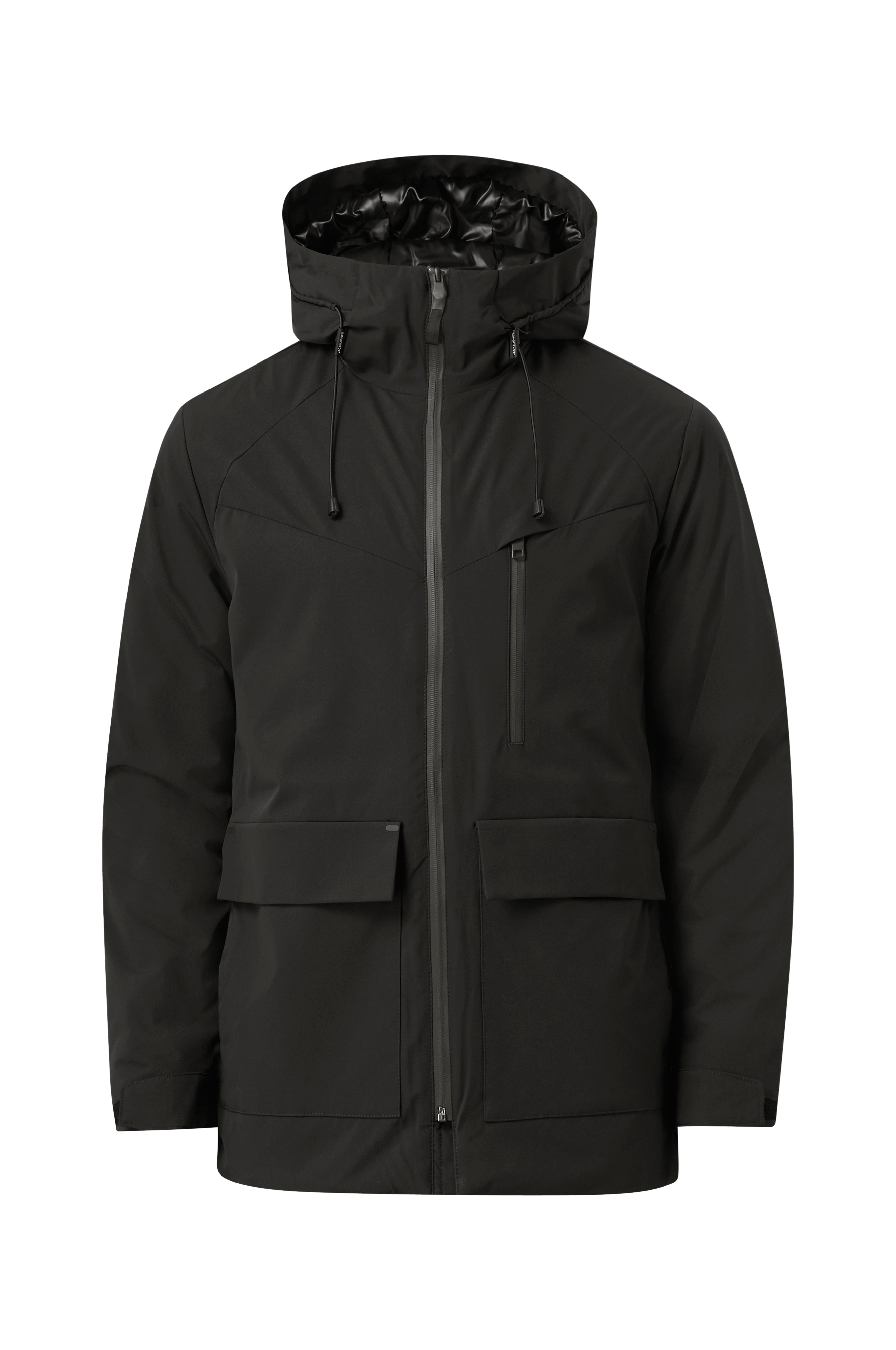 • Let foret parka • Fast hætte med træksnørre • Træksnørre • To lommer med en velcrolukning • En brystlomme med lynlås • En inderlomme • Justérbare ærmeafslutninger • Elastiske manchetter ved manchetterne med tommelfingerhul • Længde: 80 cm i størrelse M