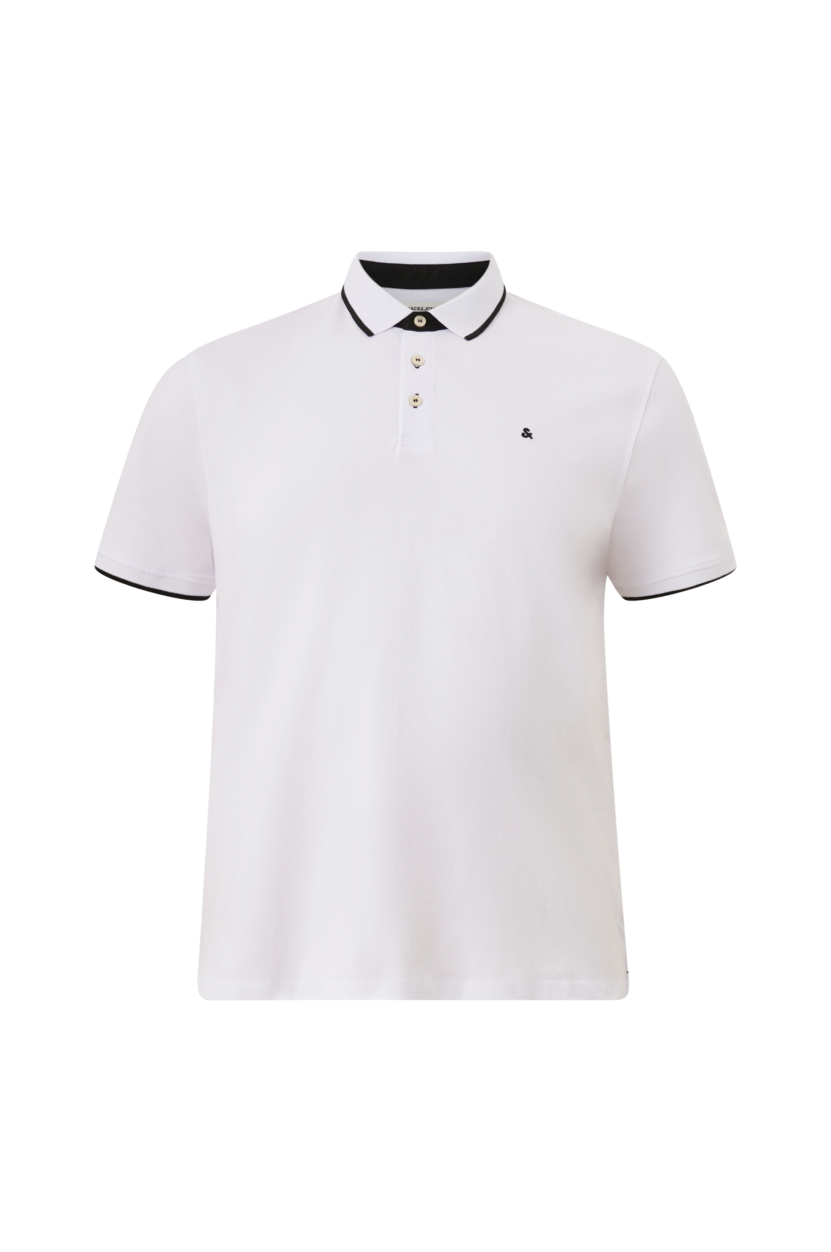 Poloshirt jjePaulos Polo SS PS Noos fra Jack & Jones i klassisk model med ribkrave og stolpelukning med tre knapper. Rib i ærmekanten. Slids i siderne og noget længere bagpå. Lille broderi på brystet.