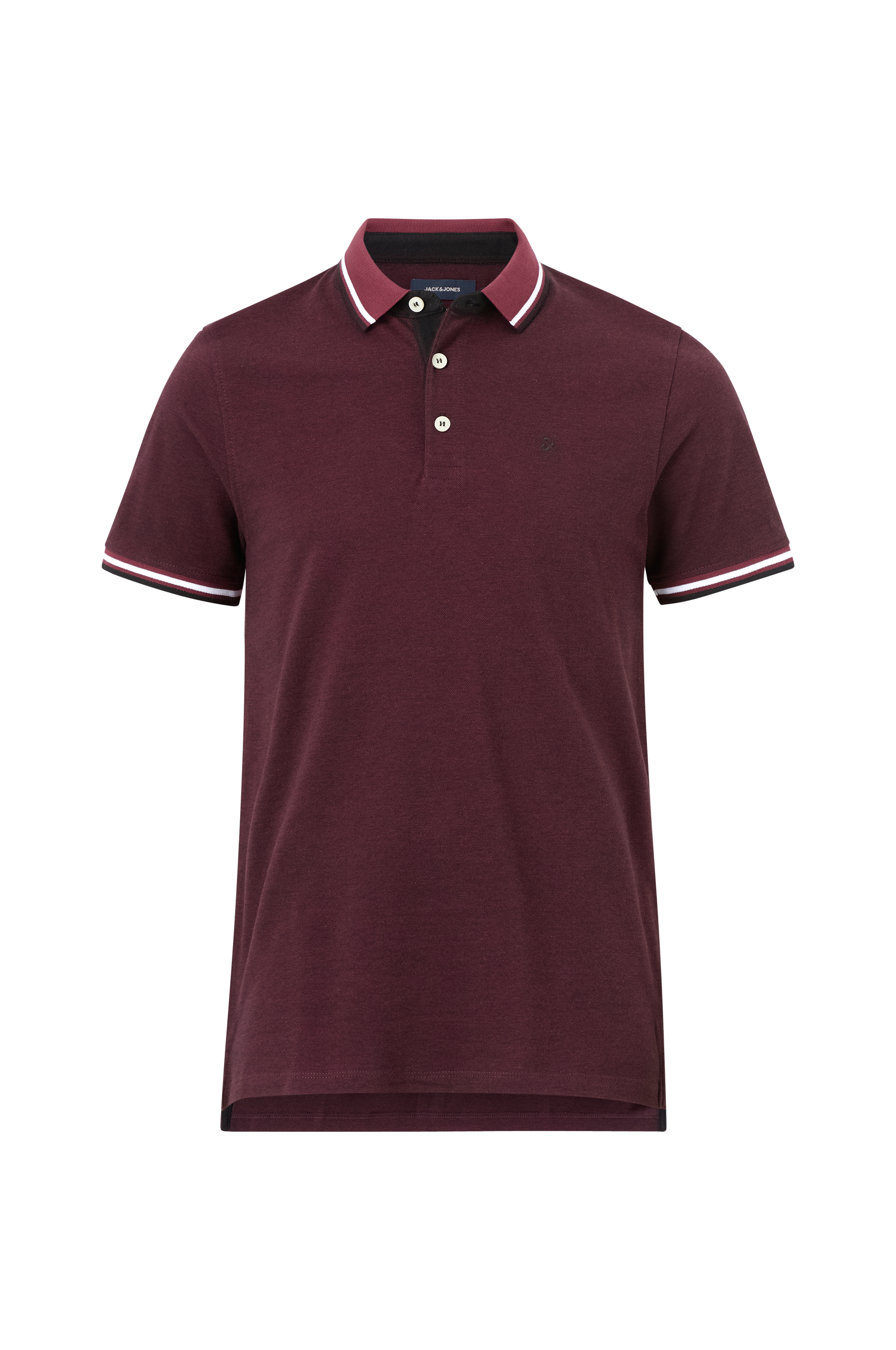 Poloshirt jjePaulos Polo SS fra Jack & Jones. Kortærmet pikéstrikket trøje med lille broderi på brystet og lille krave. Stolpelukning og kort ærme med lille kant i ærmet samt små slidser forneden i siderne. Længde foran ca. 70 cm og bagpå ca. 74 cm i str. M.