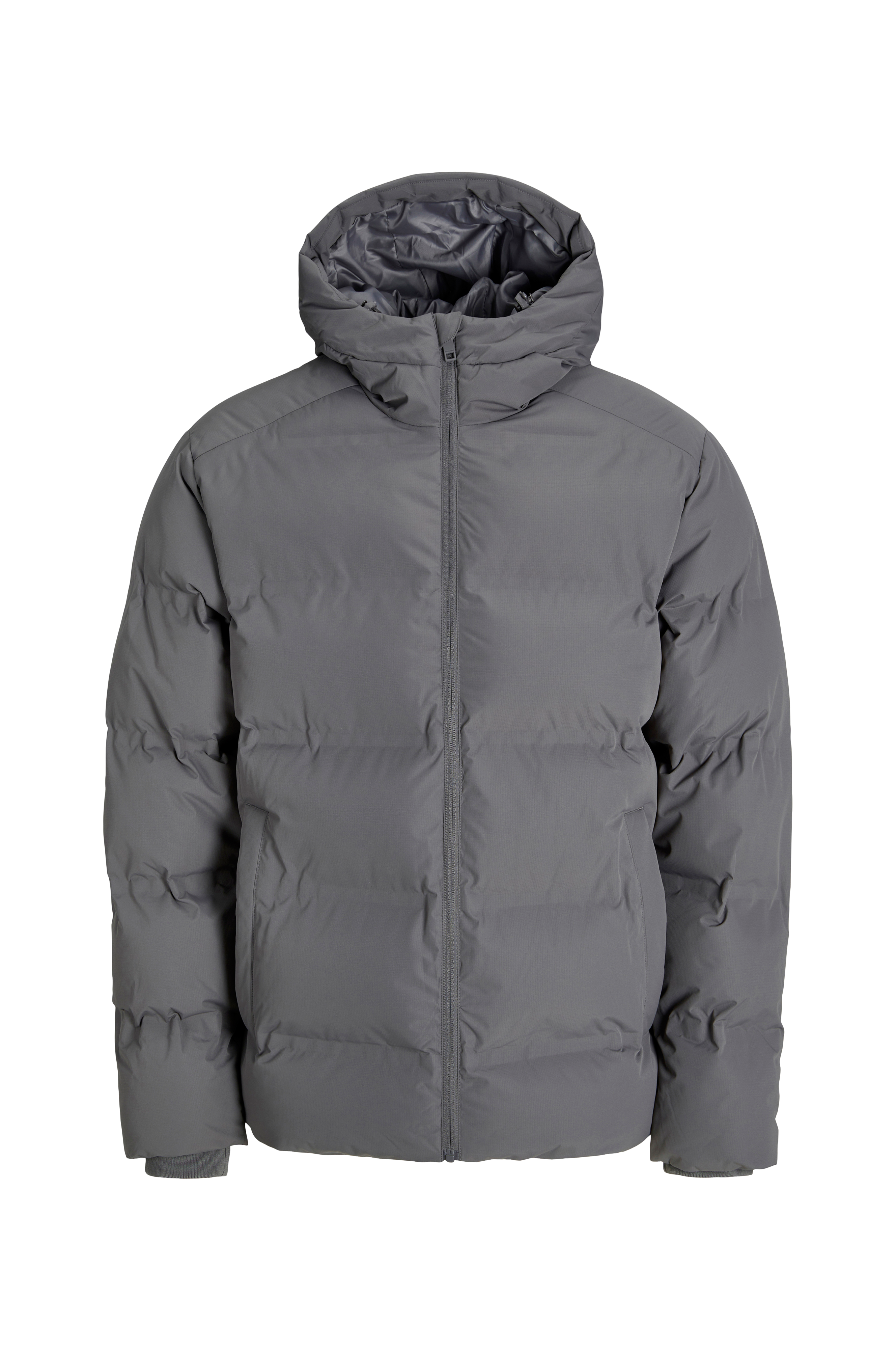 • Vandafvisende pufferjakke med justérbar hætte• Høj krave• Ribmanchetter ved manchetterne• Lynlåslukning• Hagebeskytter• Tekstilforing• En inderlomme• To sidelommer med knaplukning• Træksnørre ved nederste kant• Længde: 74 cm i størrelse M