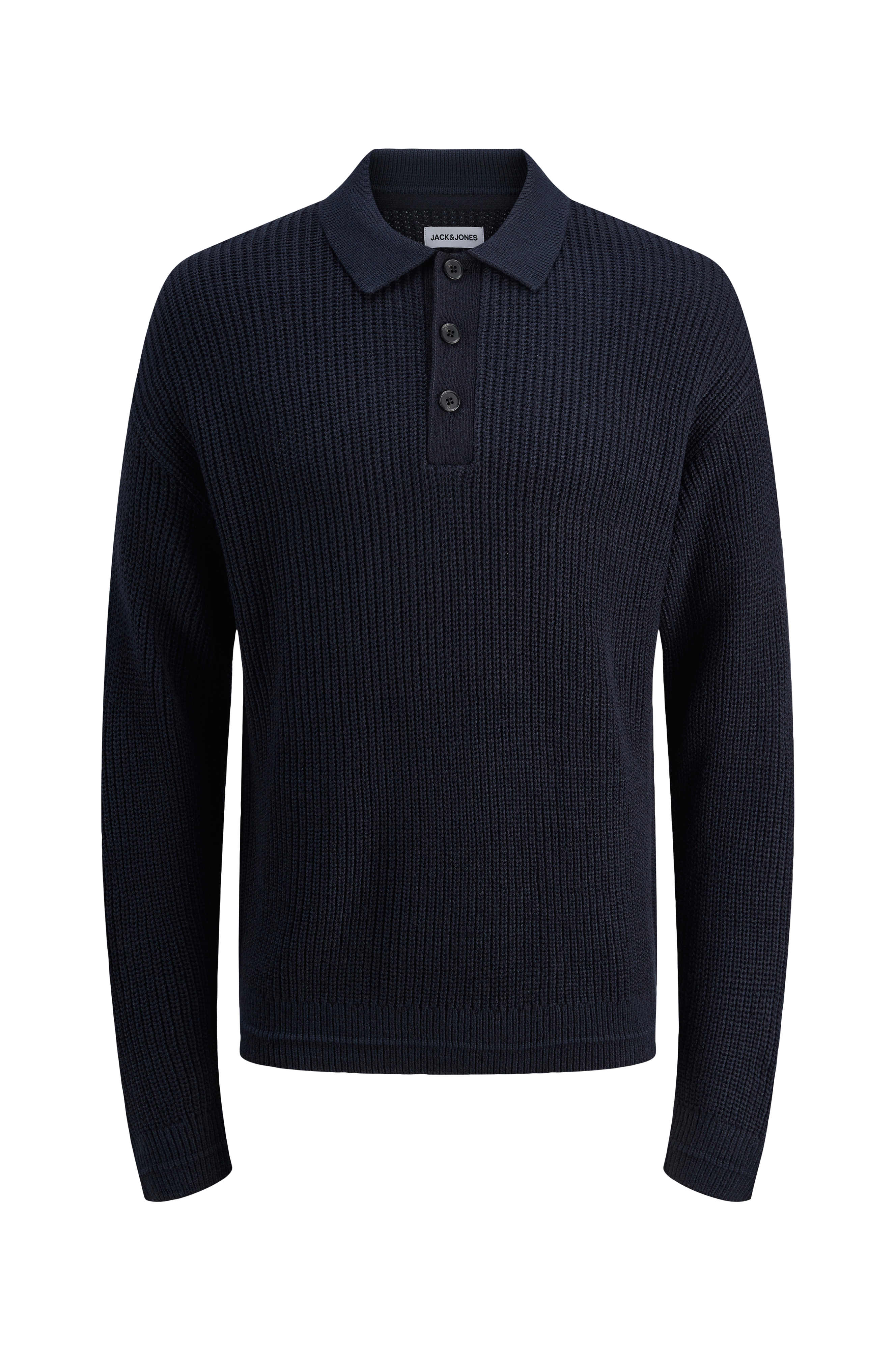 • Strikket Pullover med krave• Kort knaplukning foran• Nedsænkede skuldre• Lange ærmer• Manchetter