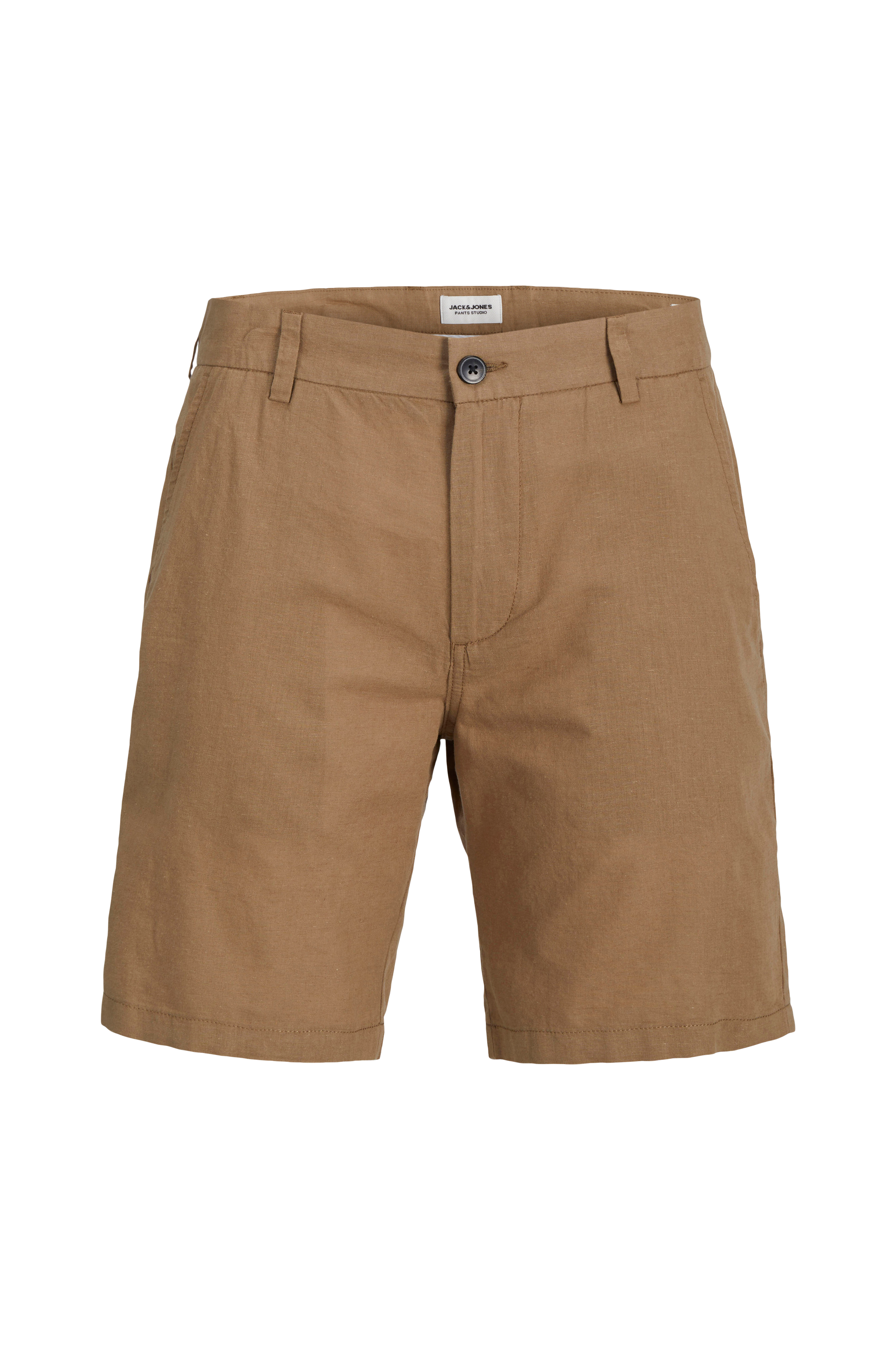 • Model i hør• Linning med stropper og gylp med lynlås• Skrå forlommer• Indlagte baglommer med knap• Indre benlængde: 19 cm i størrelse M