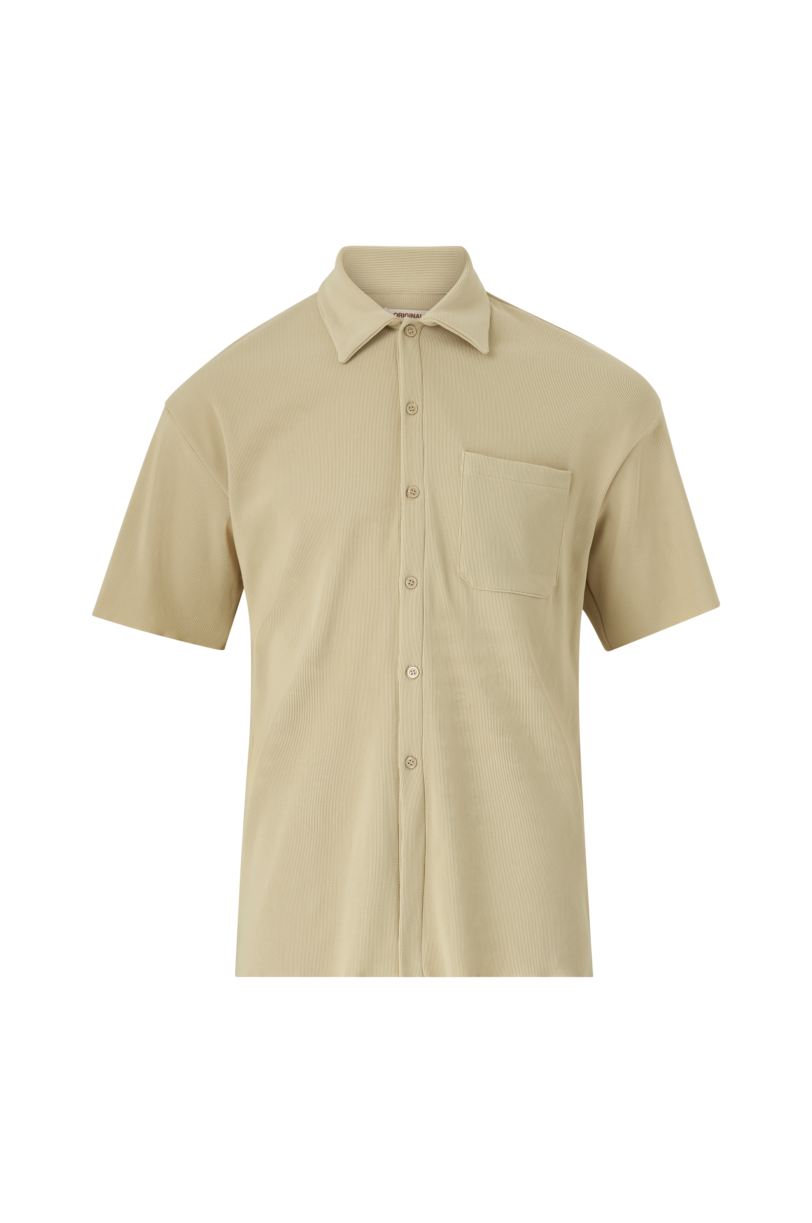 • Skjorte i ribbet jersey• Korte ærmer• En brystlomme• Ventilationer nede i siderne• Usømmede kanter ved manchetterne og nederst