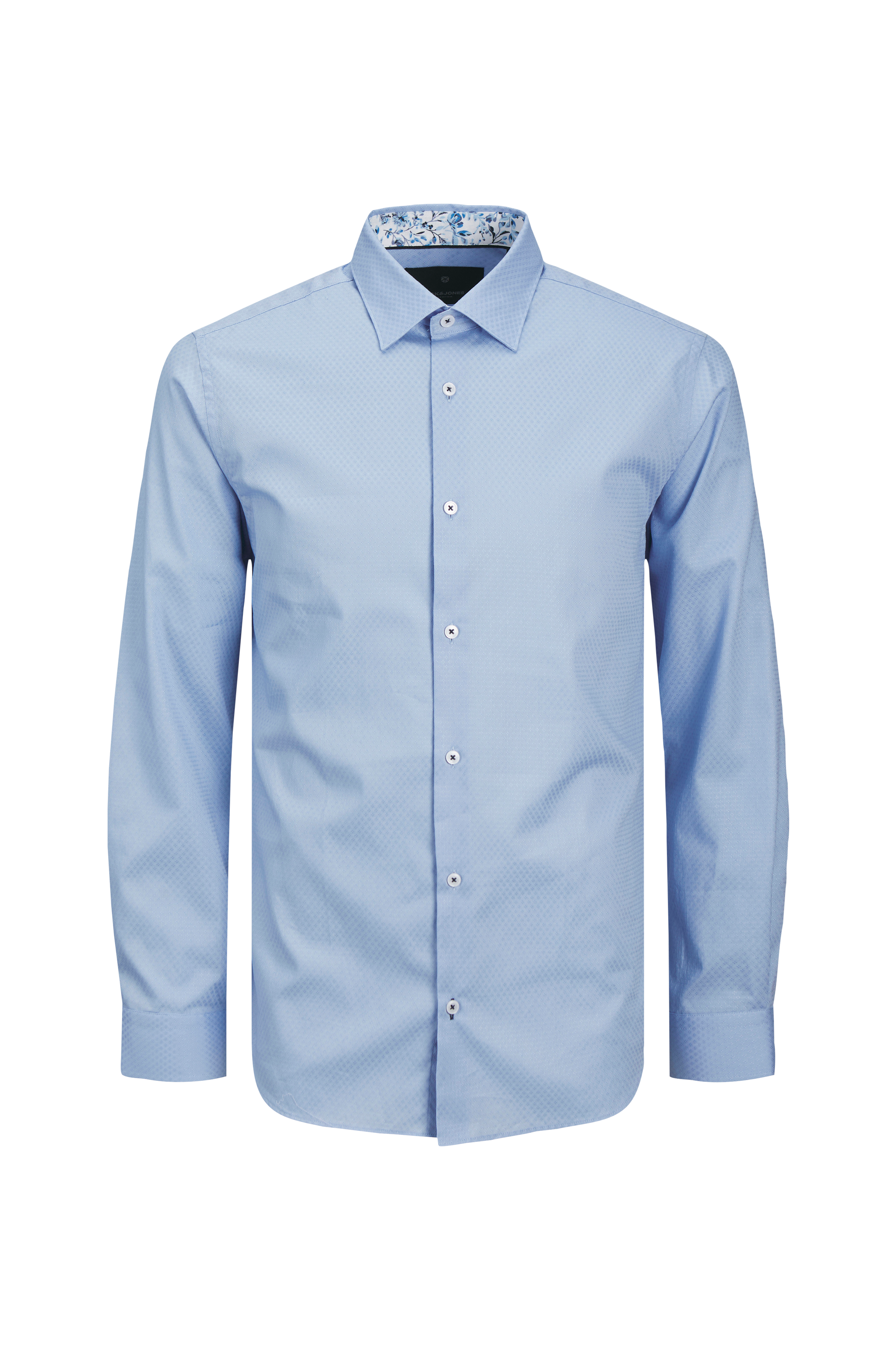 • Dobby-vævet skjorte i bomuld• Mønstret indlæg på indersiden af kraven• Manchet med to knapper• Let strukturmønster