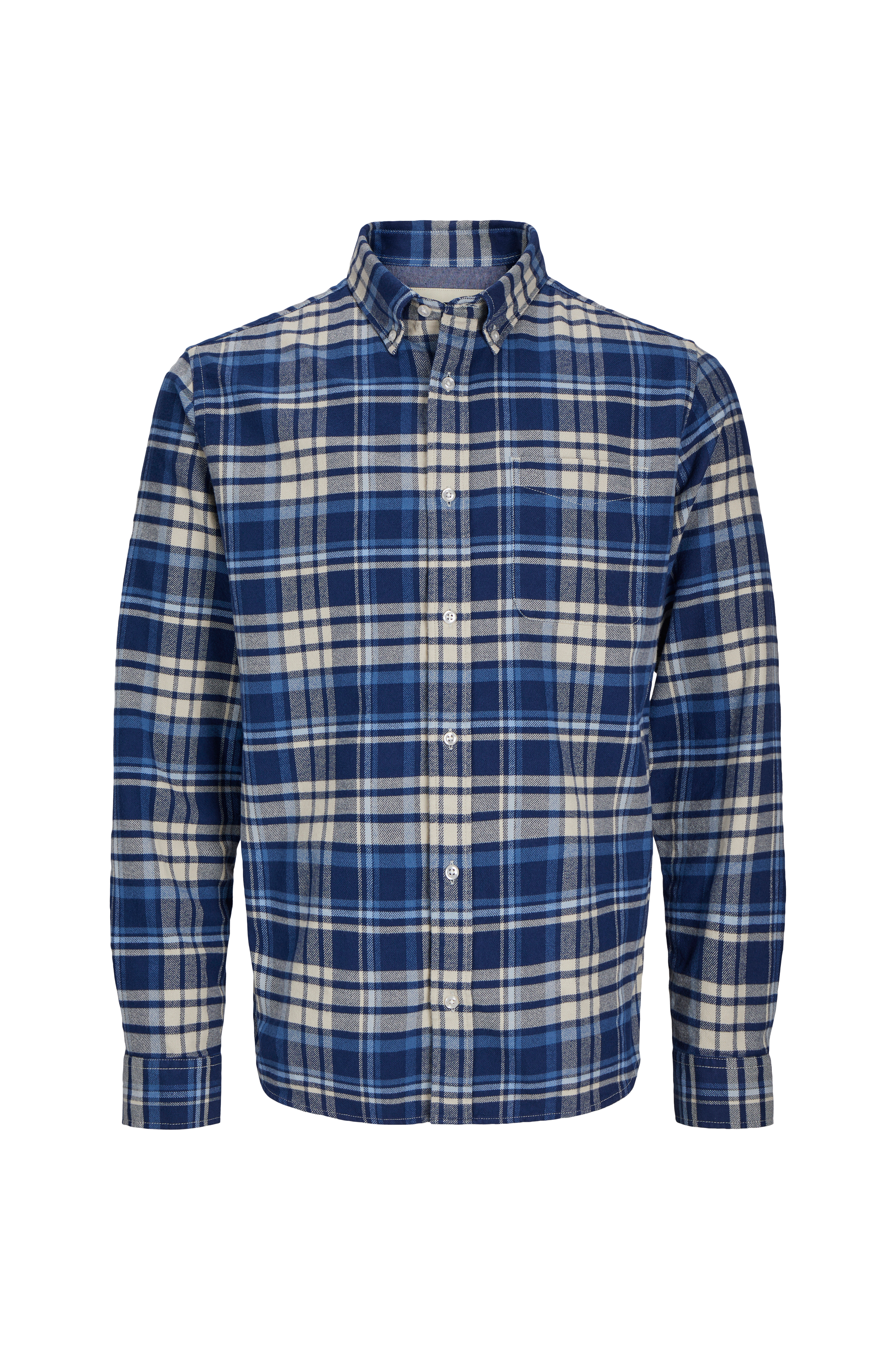 • Skjorte i bomuldsflannel• Button down-krave• En brystlomme• To knapper ved manchetterne