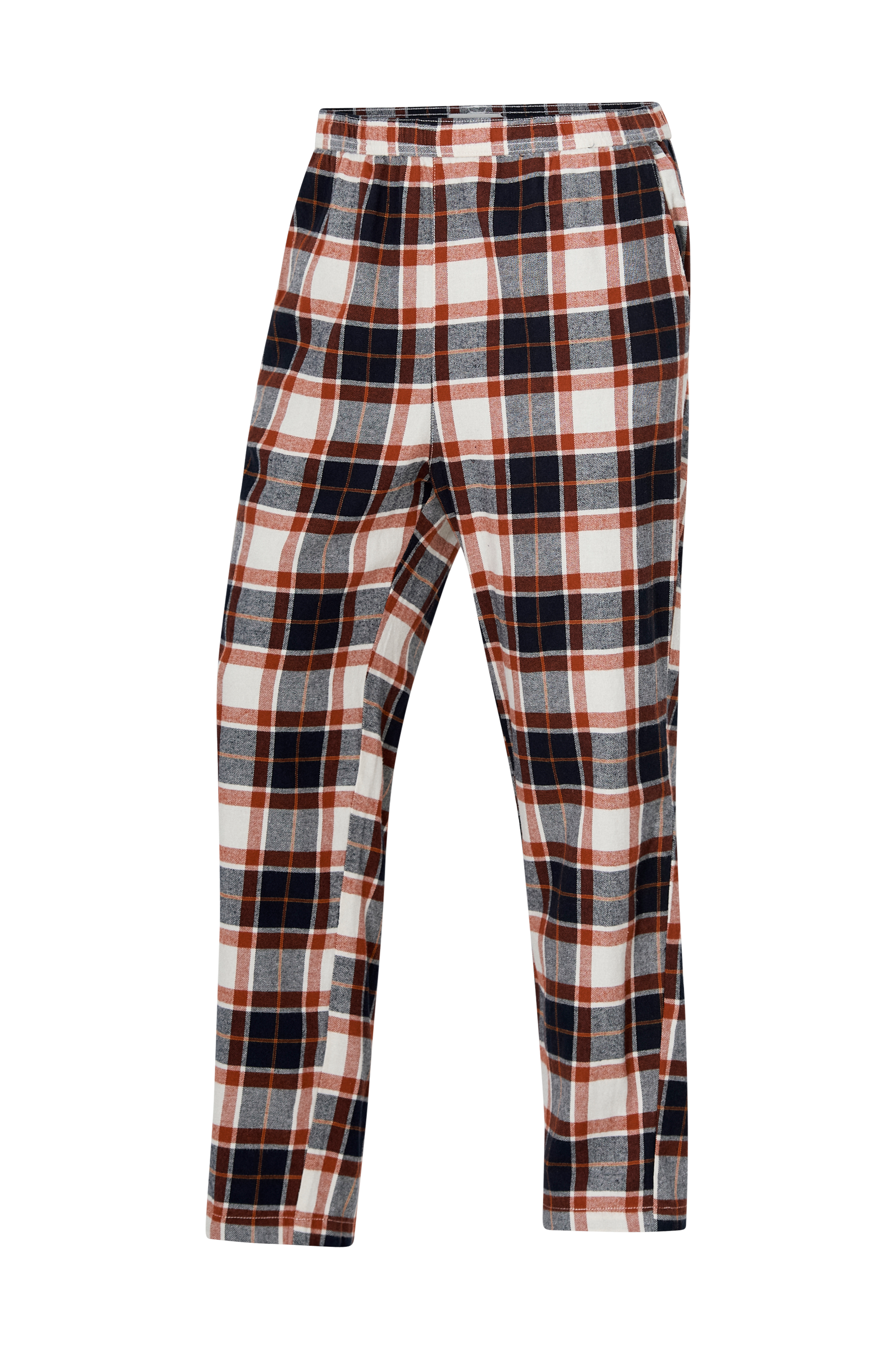 Ternede bukser i blød, børstet bomuld. Afslappede, bløde jerseybukser til afslapning derhjemme, med elastiklinning og lommer i siderne.