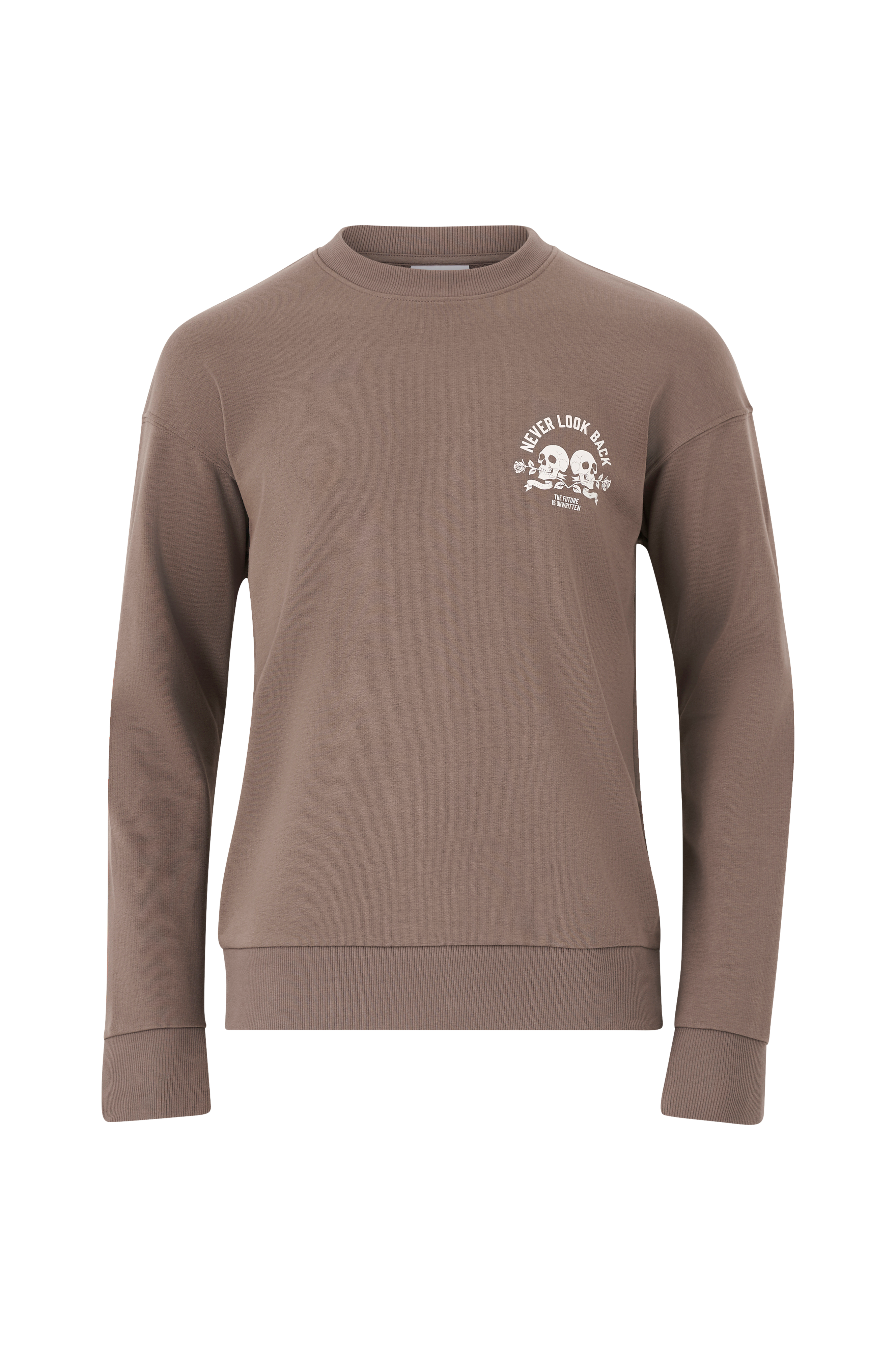 • Rund, ribbet halsudskæring• Stort tryk på ryggen• Tryk foran• Ribmanchetter ved manchetterne og nederst