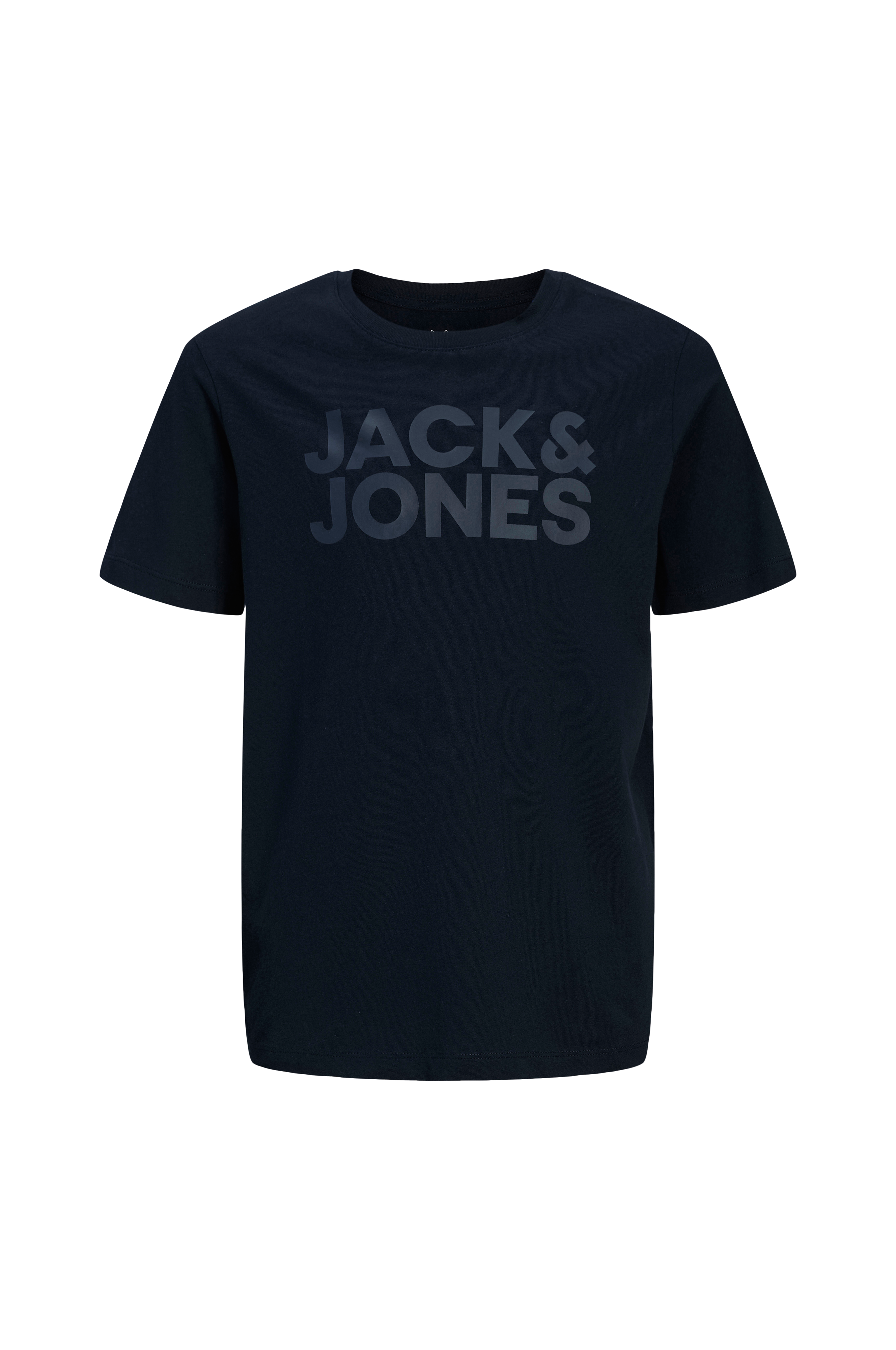 T-shirt jjeCorp Logo Tee SS Crew Neck fra Jack & Jones med printet logo foran. Rund halsudskæring med ribkant.