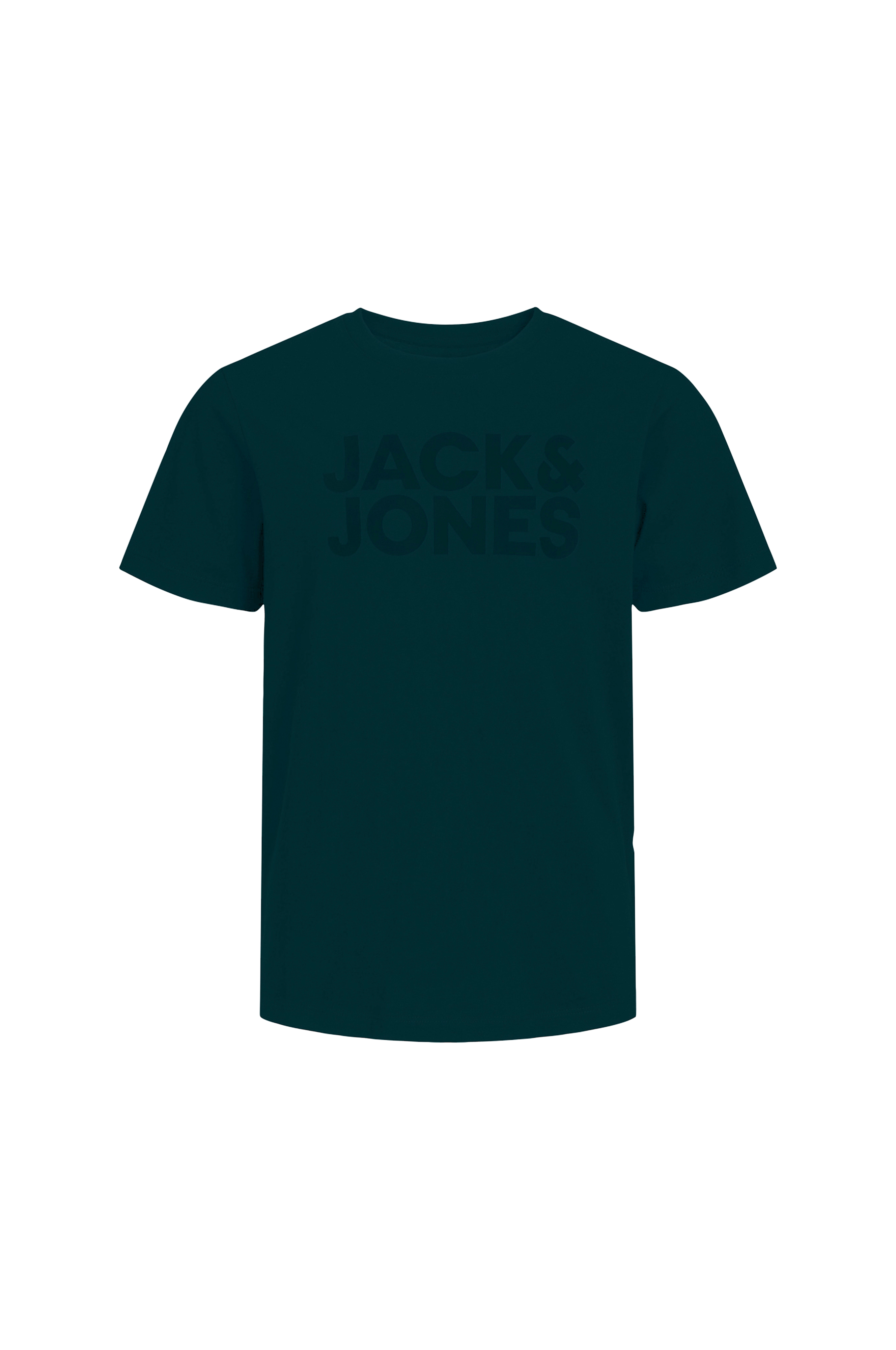 T-shirt jjeCorp Logo Tee SS Crew Neck fra Jack & Jones med printet logo foran. Rund halsudskæring med ribkant.