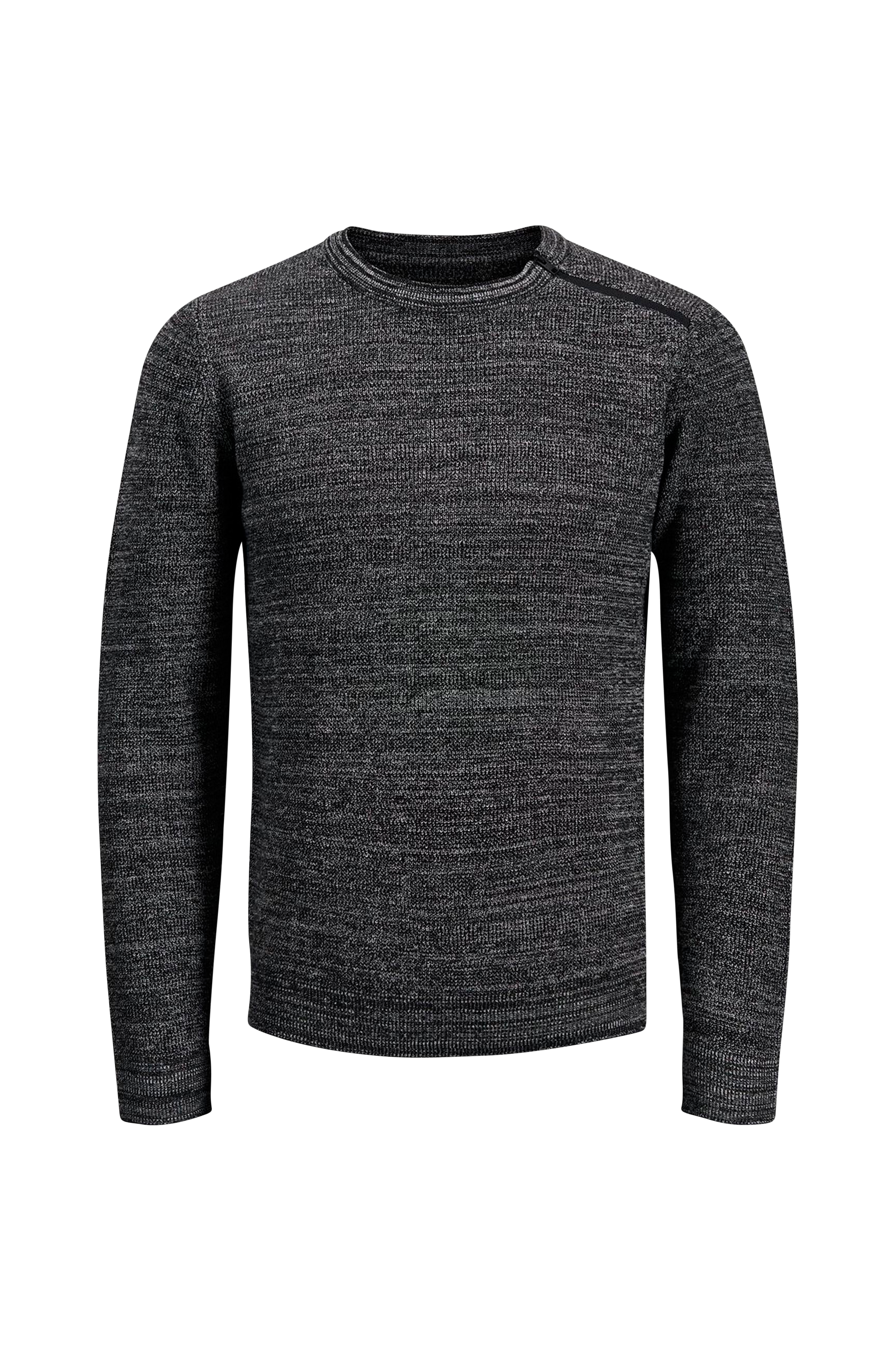 Meleret striktrøje jcoMount Knit Crew Neck fra Jack & Jones. Rund hals med ribkant og lynlås på den ene skulder.