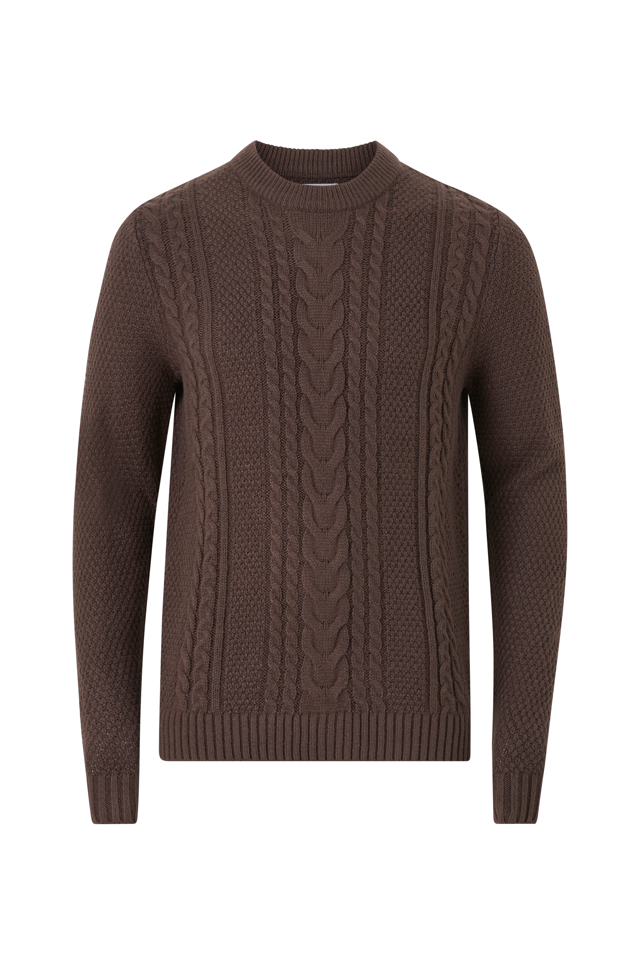 • Strukturstrikket trøje med kabelstrikning foran• Rund, ribbet halsudskæring• Ribstrik ved manchetterne og nederst
