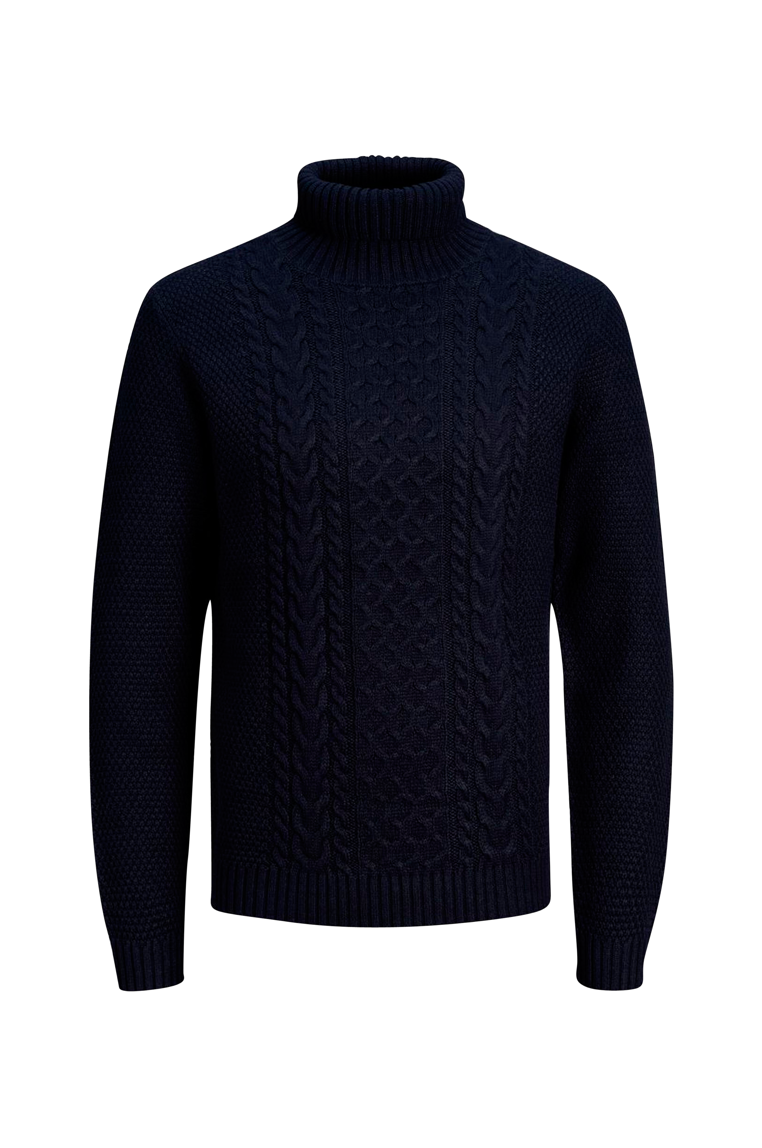 • Strukturstrikket trøje med kabelstrikkede detaljer foran• Høj, ribbet turtleneck• Ribmanchetter ved manchetterne og nederst