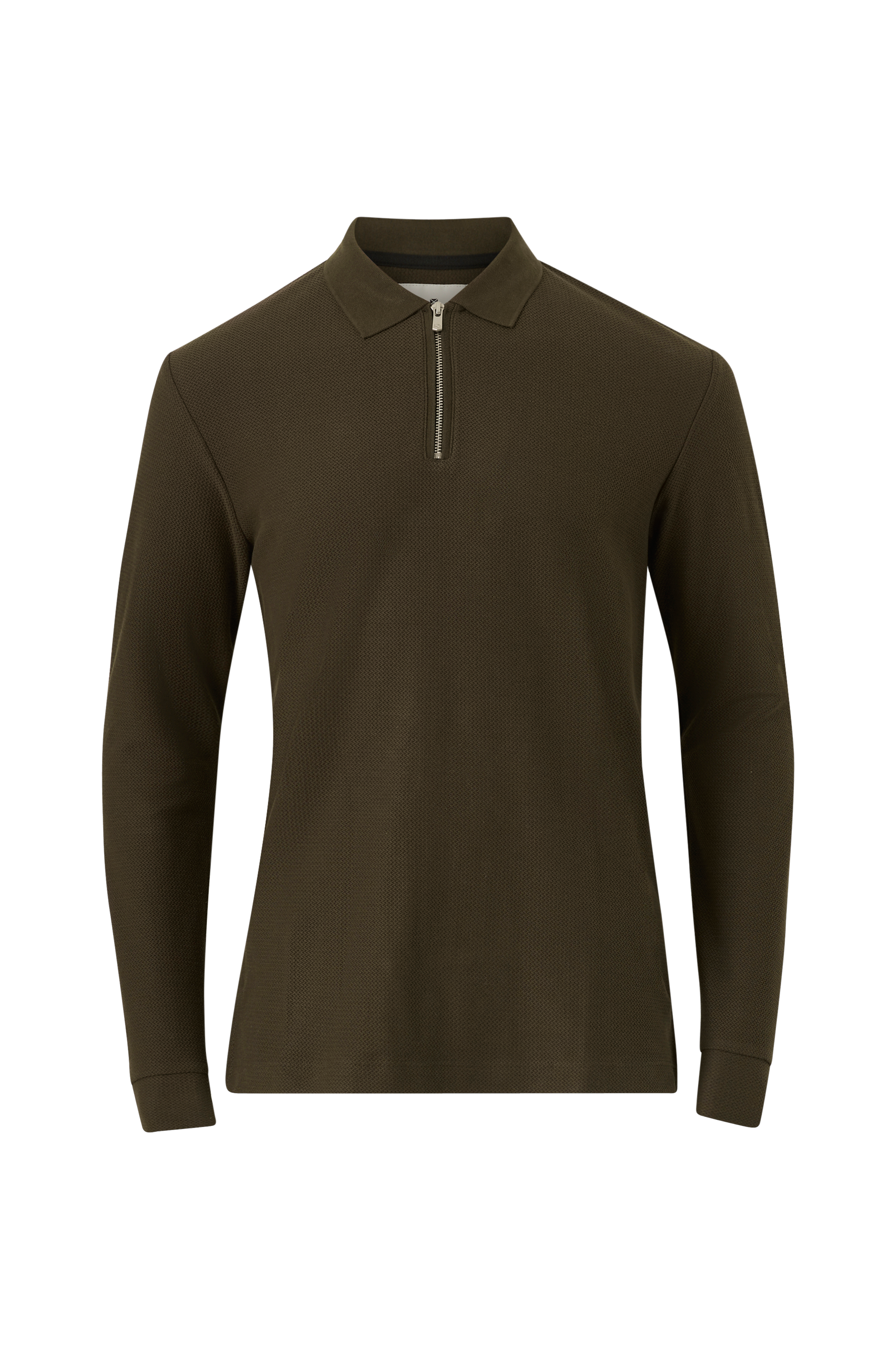 • Sweater i struktureret materiale med stretch• Ribbet krave• Kort lynlås• Manchetter ved manchetterne• Slids nede i siderne