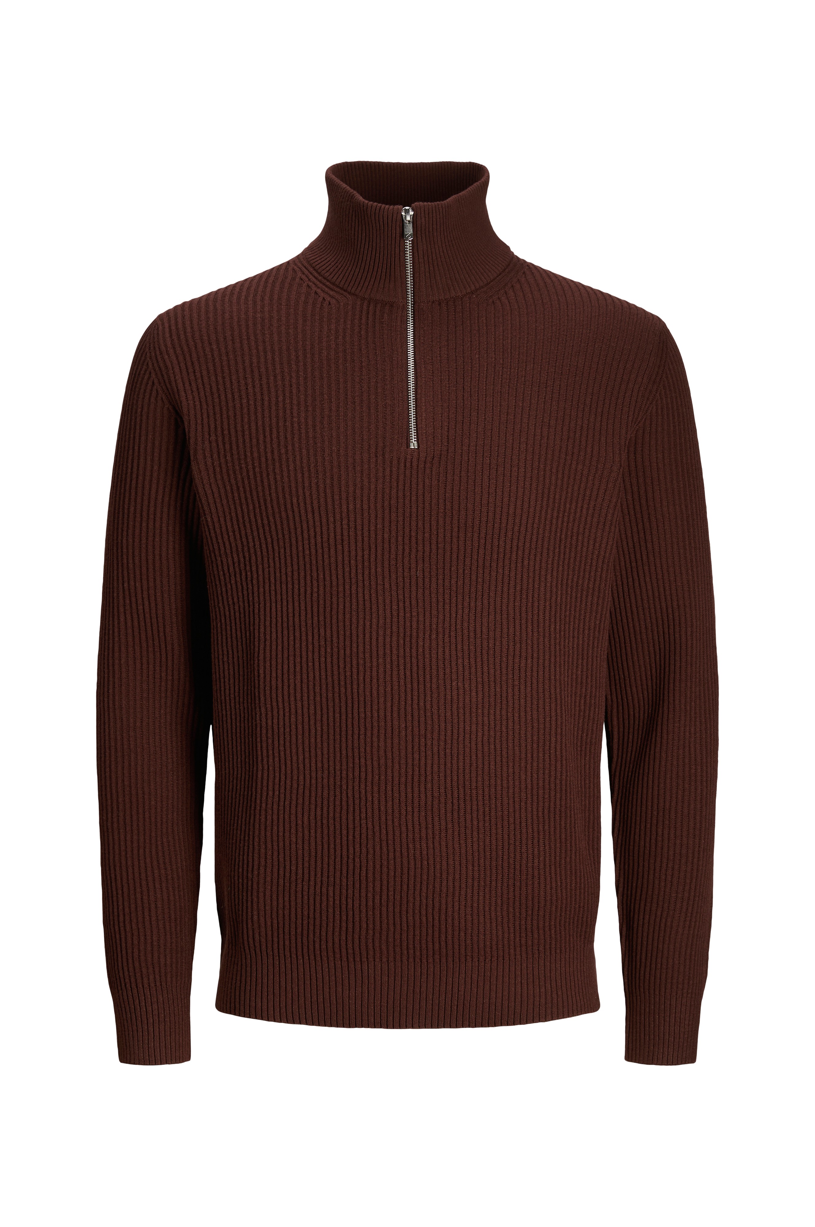 • Ribstrikket trøje i bomuldsblanding• Opretstående krave• Kort lynlås