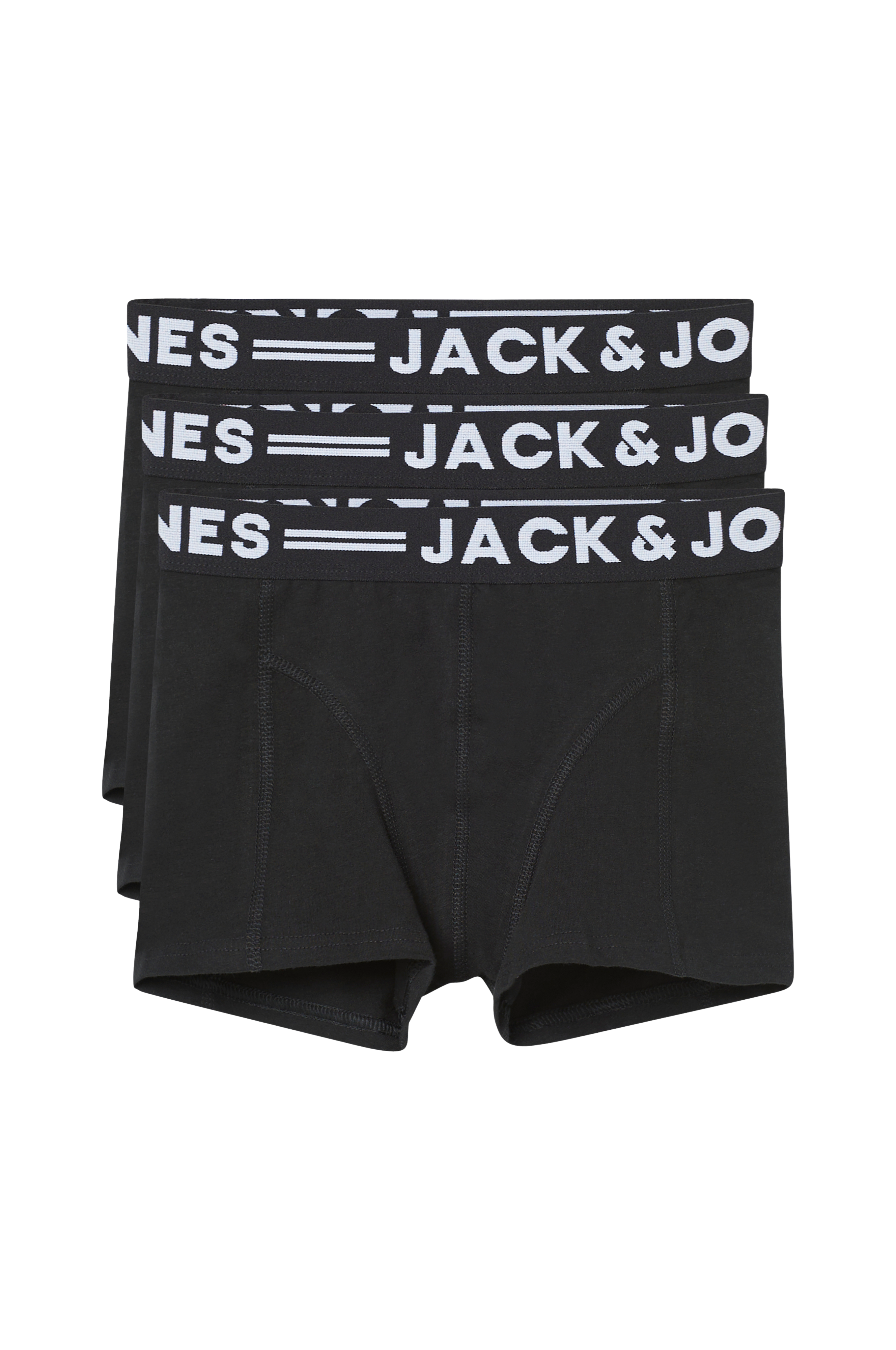 Underbukser Sense Trunks i 3-pak fra Jack & Jones i blød bomuldsjersey med stretch. Elastiklinning med logo. Foret foran. Tre ensfarvede.