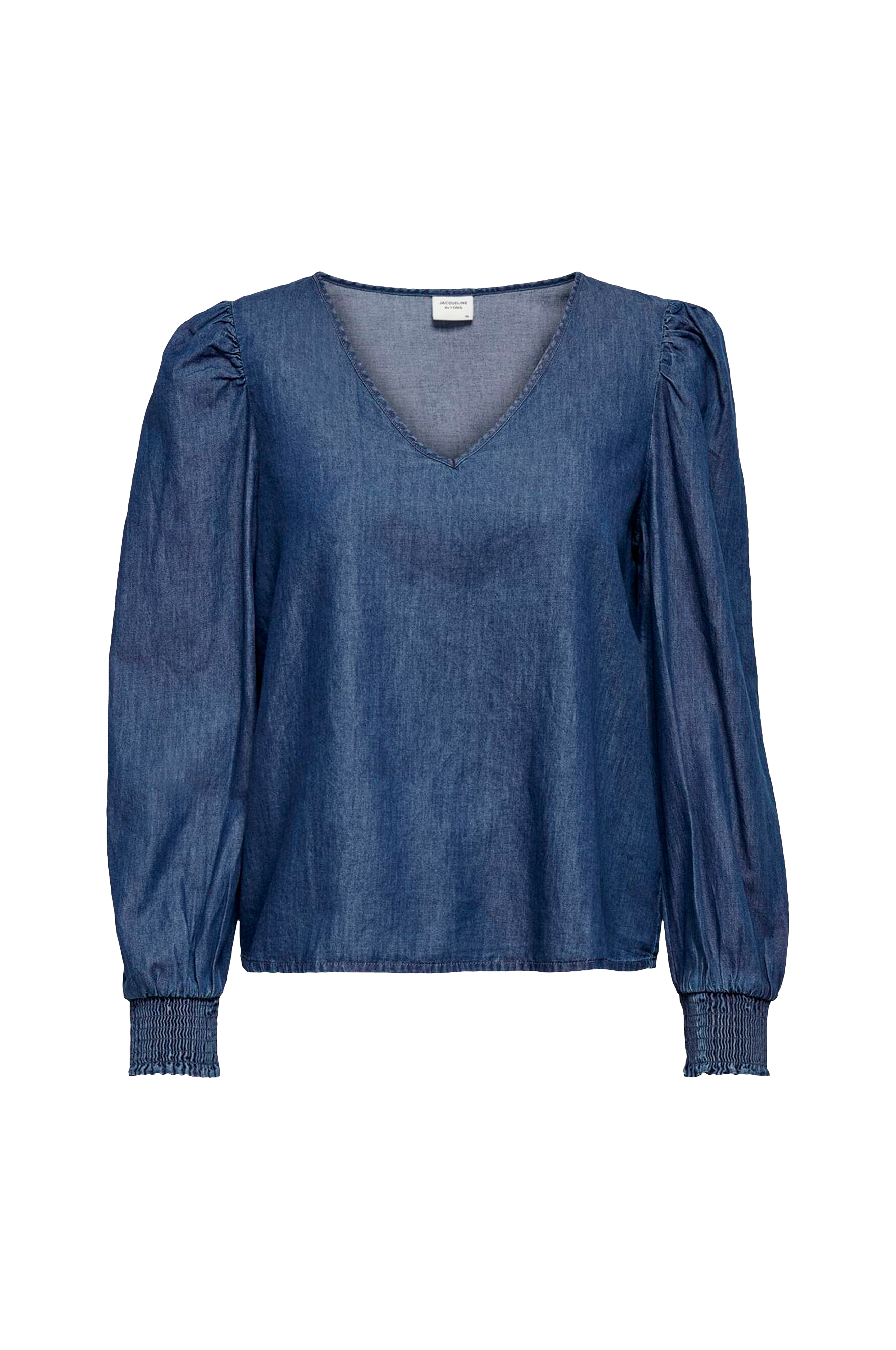 Bluse jdyEvelyn L/S Smock Top Wvn fra Jacqueline de Yong med V-udskæring foran og noget vide ærmer med smock i ærmekant og pufeffekt på skuldrene. I vævet kvalitet.