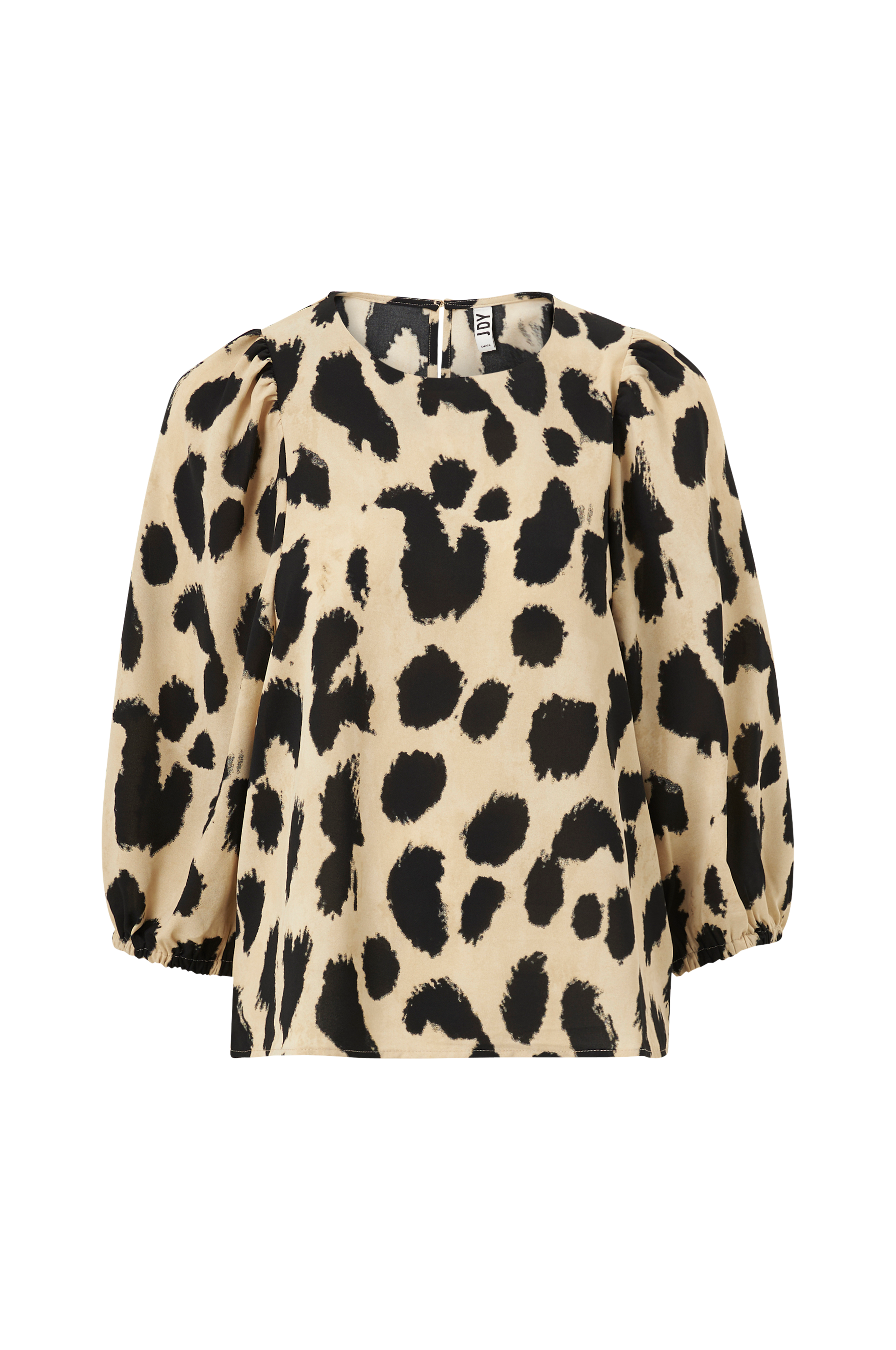 • 3/4 lange ballonærmer• Rund hals med ventilation og knap i nakken