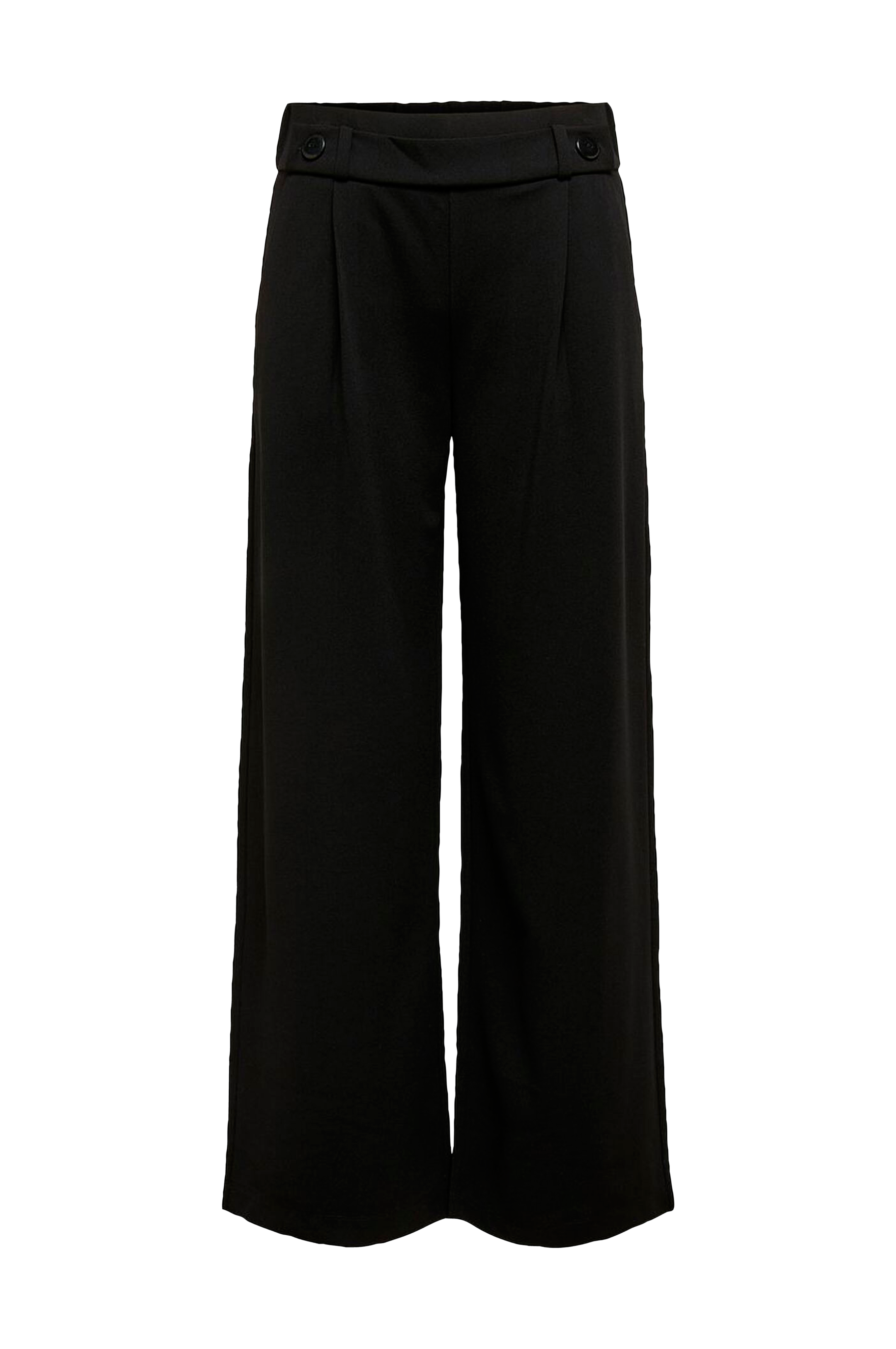 Bukser jdyGeggo New Long Pant fra Jacqueline de Yong med vide ben og høj, elastisk talje med lagte læg og pynteknapper foran. Lommer i siderne.