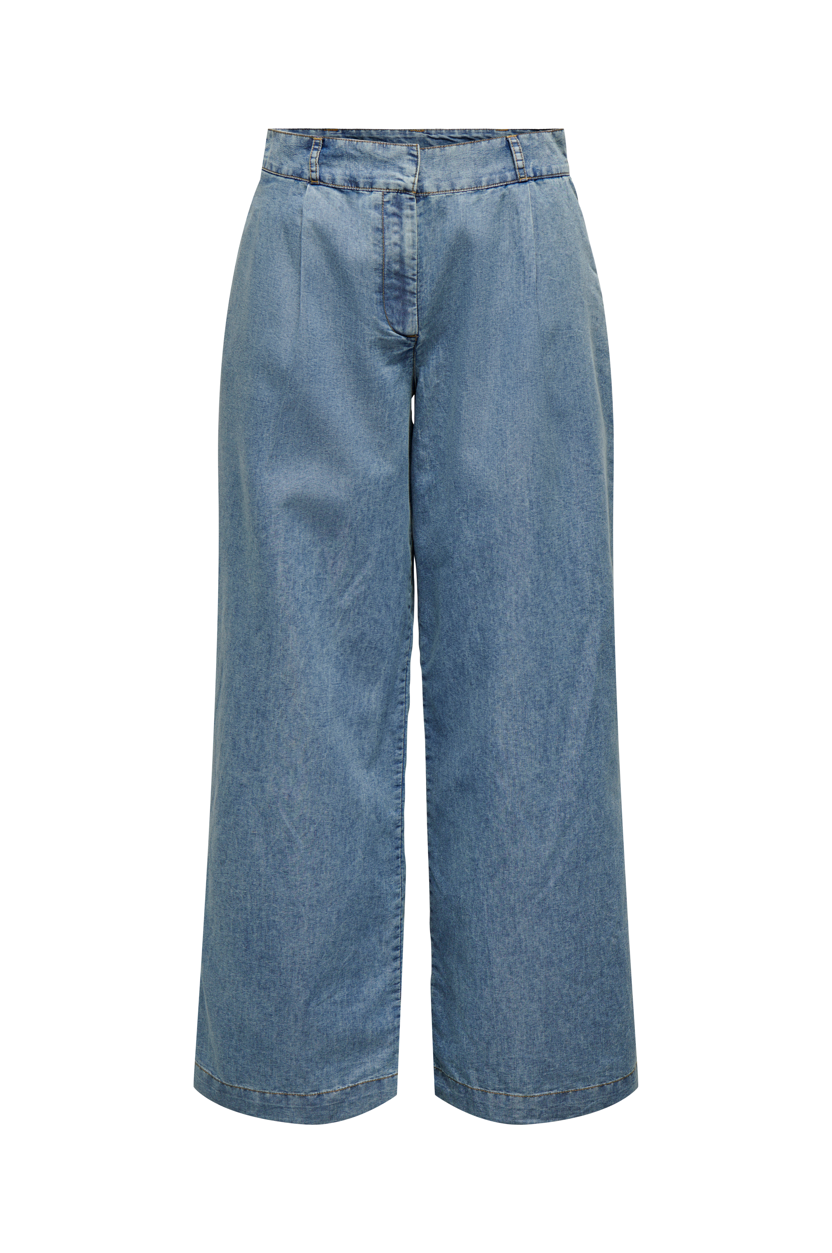 • Model i blødt denim• Høj talje med linning og stropper• Indlagte sidelommer• Brede, lige ben