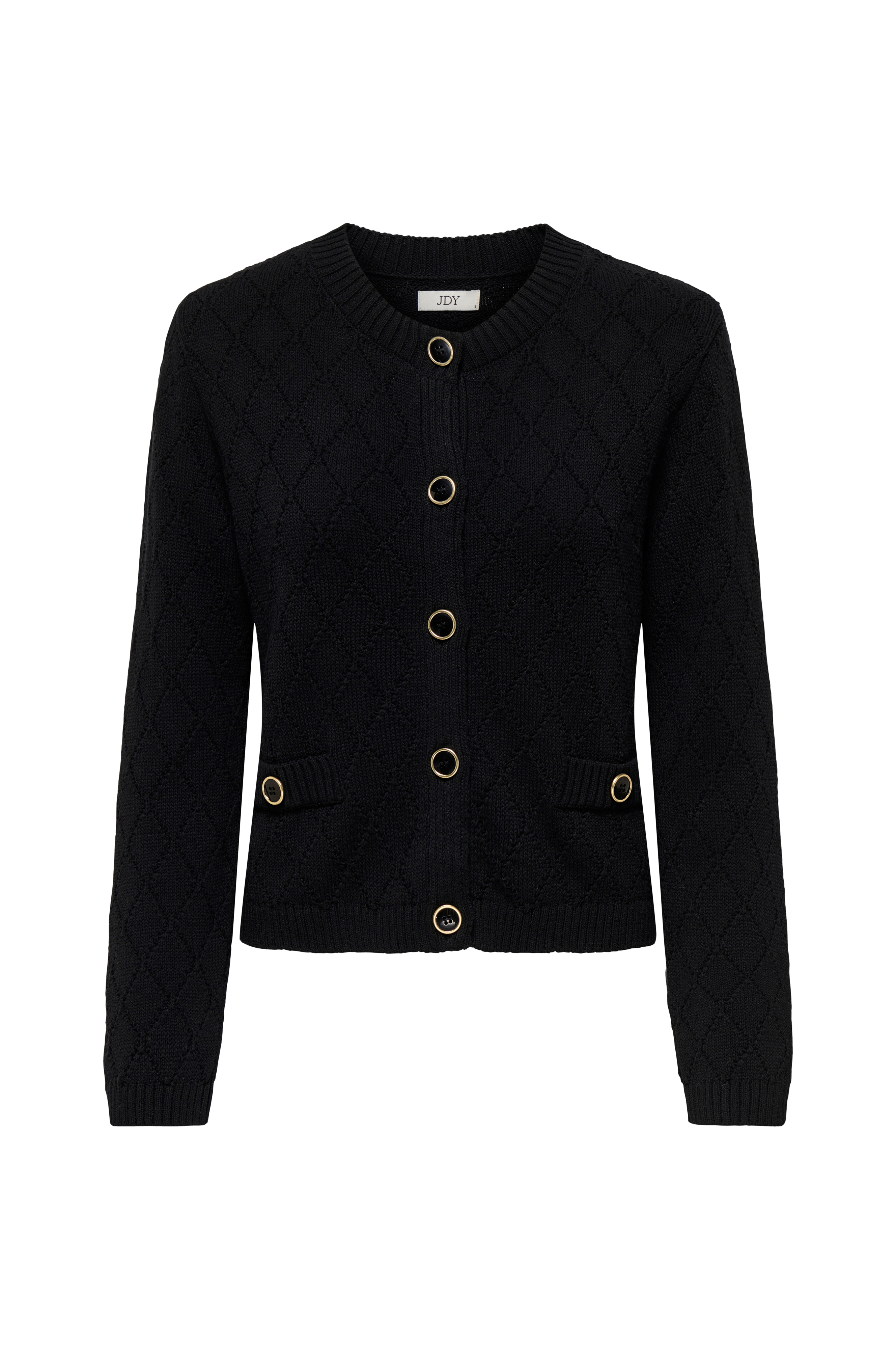 • Strukturstrikket cardigan• Rund, ribbet halsudskæring• Knaplukning• Knapdetaljer nede foran• Ribstrik ved manchetterne og nederst