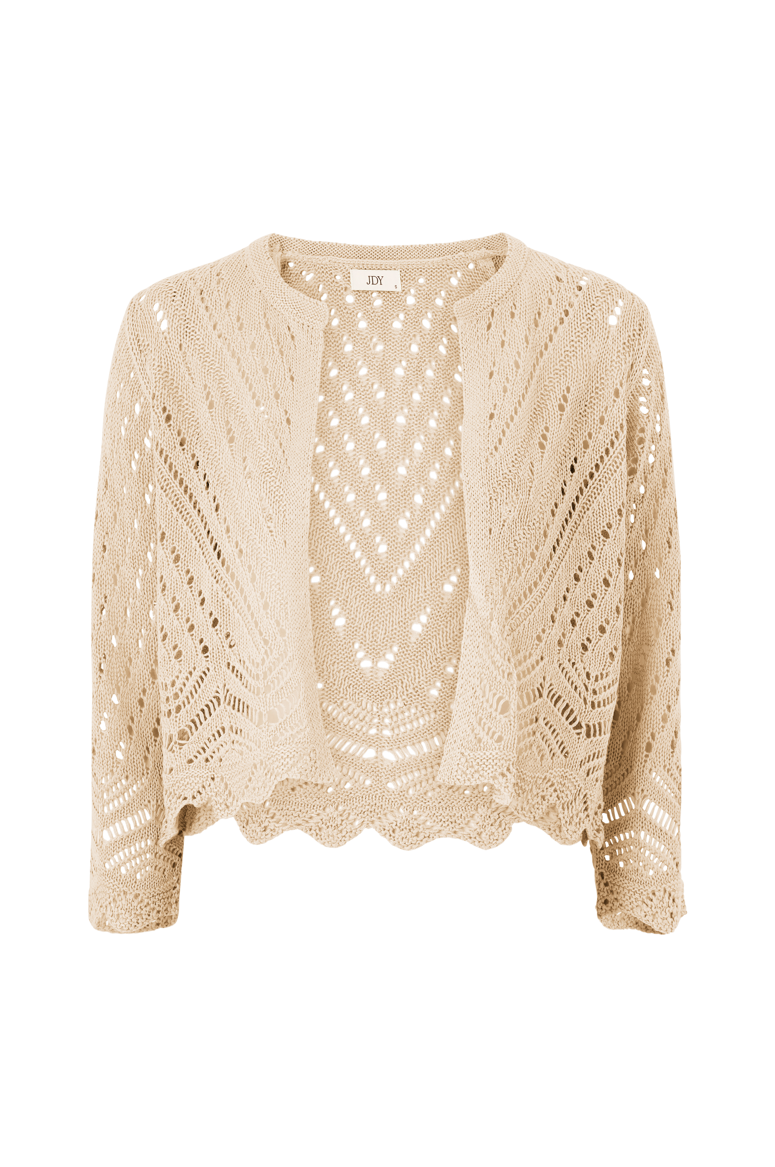 Meget dejlig, luftig og elegant sommertrøje. Perfekt over en tunika eller kjole, man føler sig fin og velklædt i denne cardigan!!! Den benhvide farve passer til alle farver og mønstre, pe…