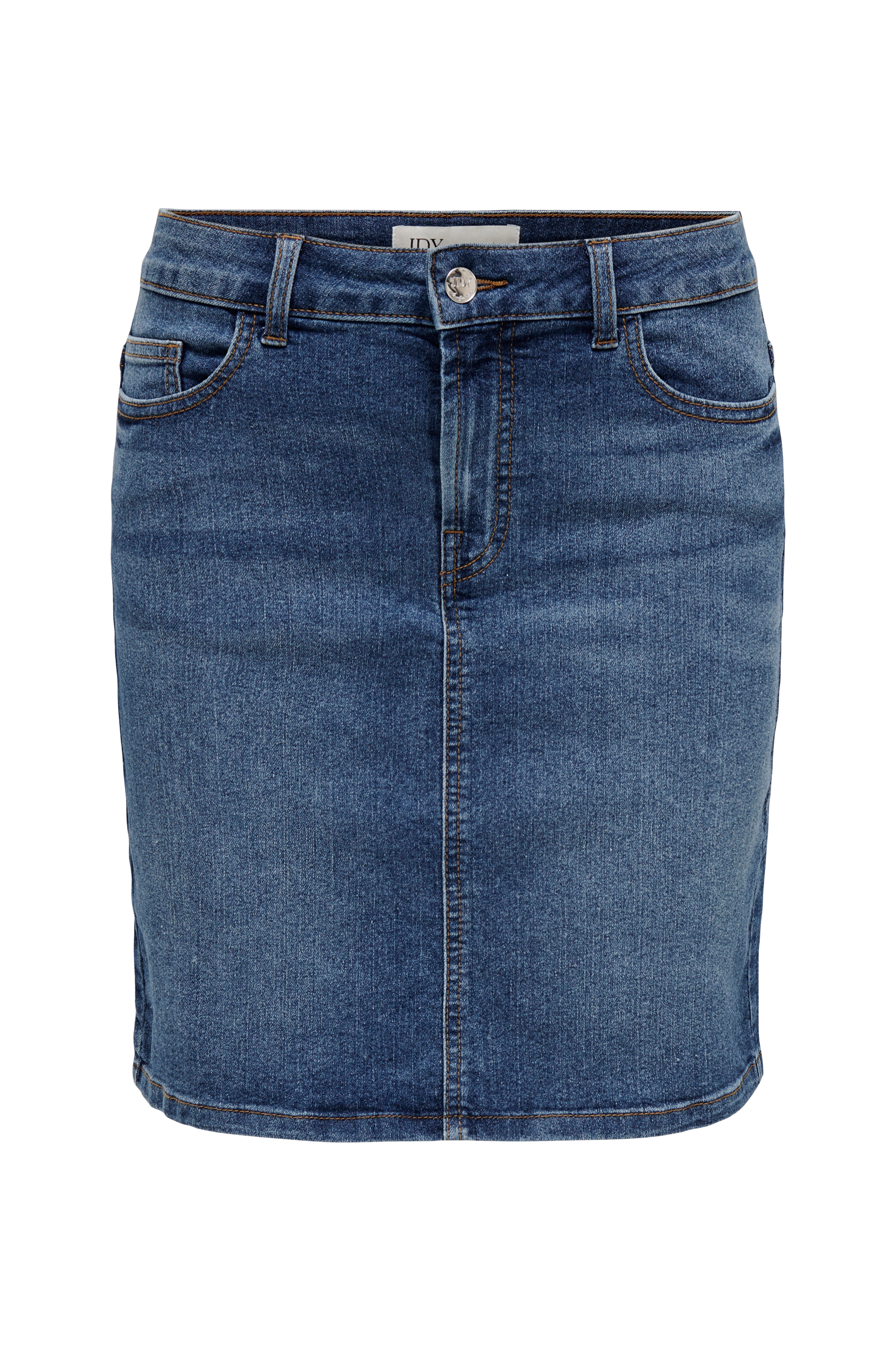 • Kort cowboynederdel i strækdenim• Femlommemodel• Gylp med lynlås• Længde: 43 cm i størrelse S
