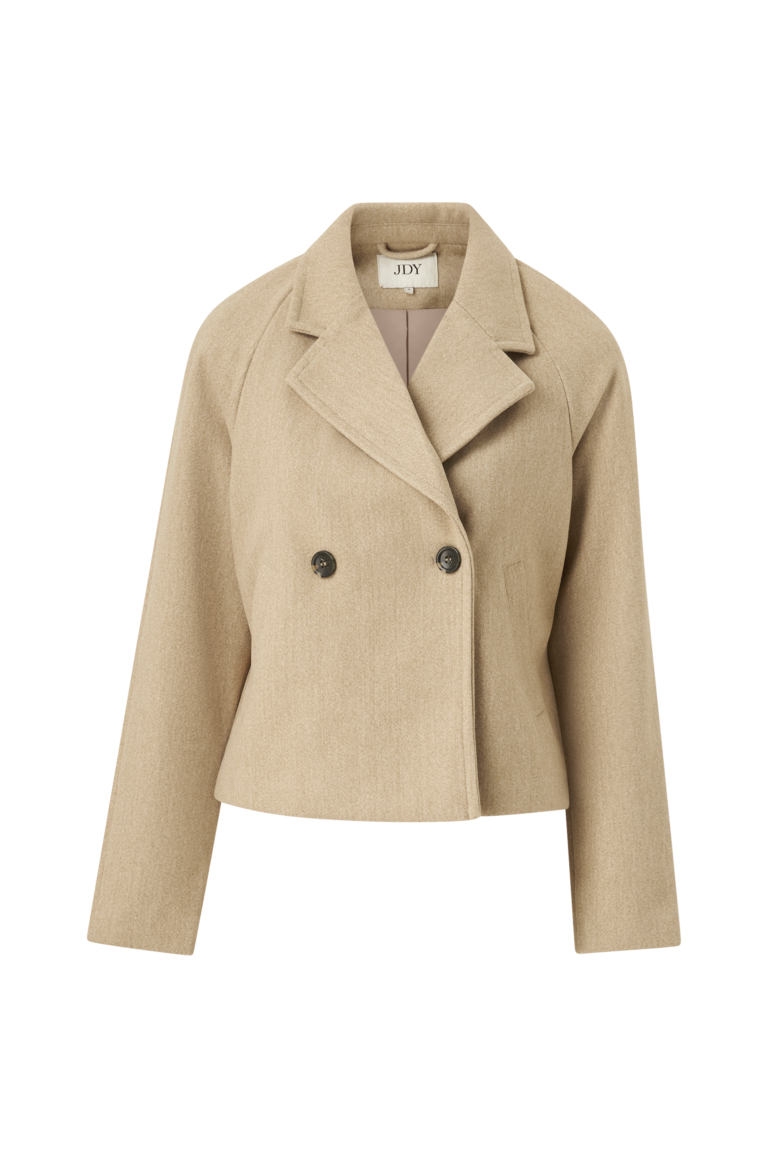 • Bred, lige model• Krave med revers• Knapper foran• Indlagte lommer• Langt raglanærme• Foret• Længde: 58 cm i størrelse S