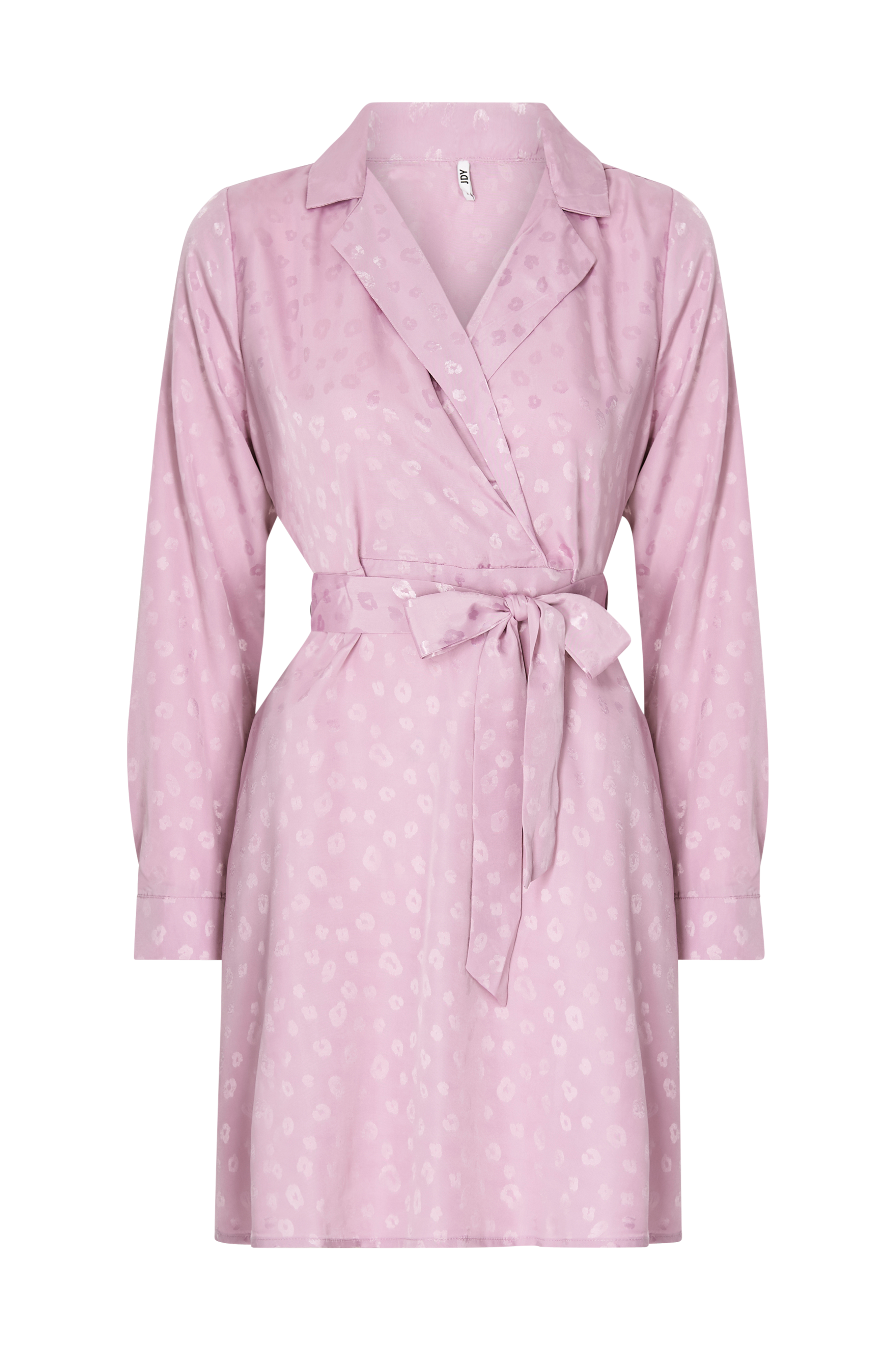 • Kort model med svaj• V-udskæring med slå-om og krave• Lange ærmer med manchet• Bindebælte ved taljen• Skinnende kvalitet• Længde: 88 cm i størrelse S