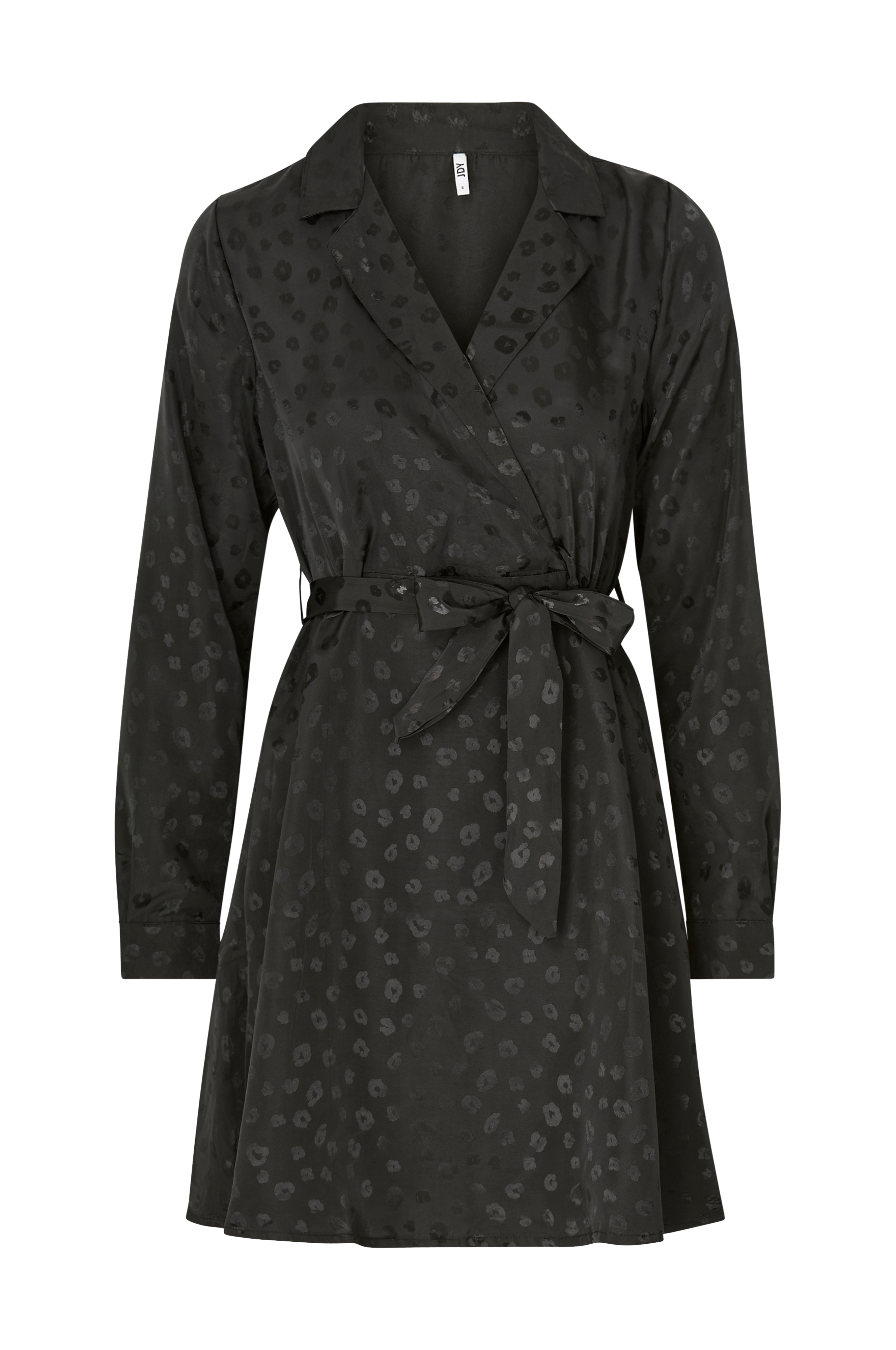 • Kort model med svaj• V-udskæring med slå-om og krave• Lange ærmer med manchet• Bindebælte ved taljen• Skinnende kvalitet• Længde: 88 cm i størrelse S