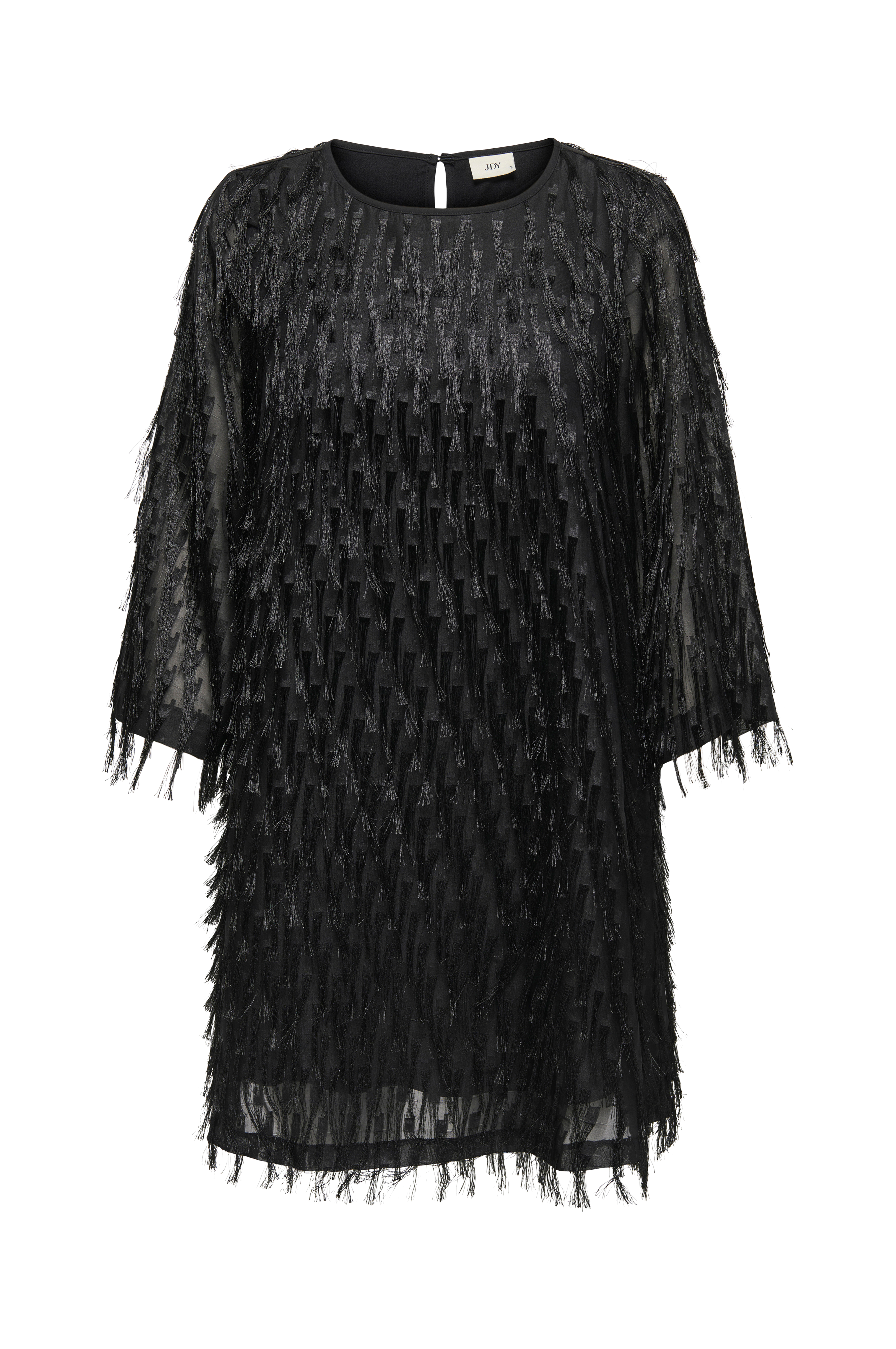 • Kort kjole med dekorative frynser overalt• 3/4 lange ærmer• Rund halsudskæring• Slids med knap i nakken• Let udsvingende model• Længde: 88 cm i størrelse S