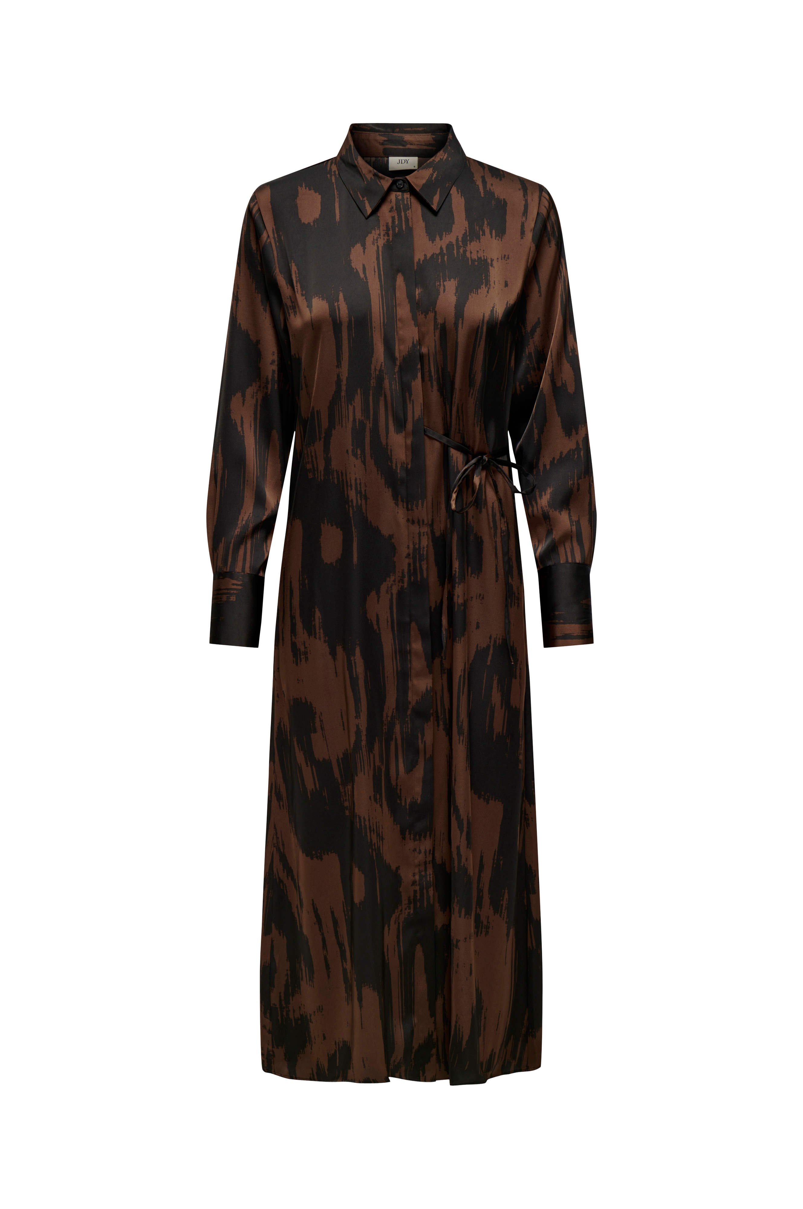 • Skjortekjole i satin• Skjult knapstolpe hele vejen frem• Bindebånd ved taljen• Lange ærmer• Manchetter med to knapper• Længde: 126 cm i størrelse S
