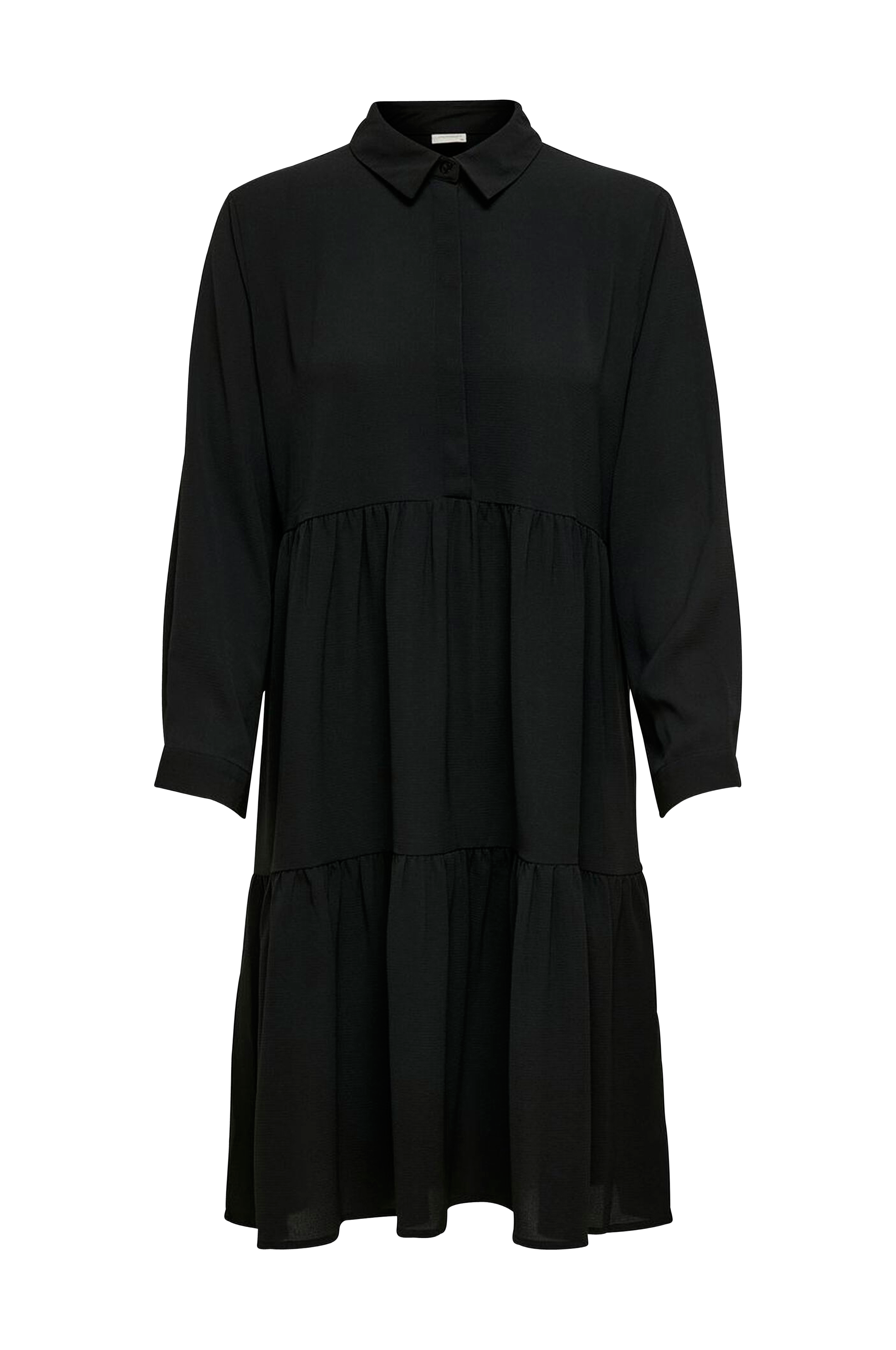 Kjole jdyPiper L/S Shirt Dress Wvn fra Jacqueline de Yong i vævet, crepet kvalitet. Skjult stolpelukning foroven foran og klassisk krave. Flæsesyet nederdel og lange ærmer med manchet. Længde ca. 95 cm i str. 36.