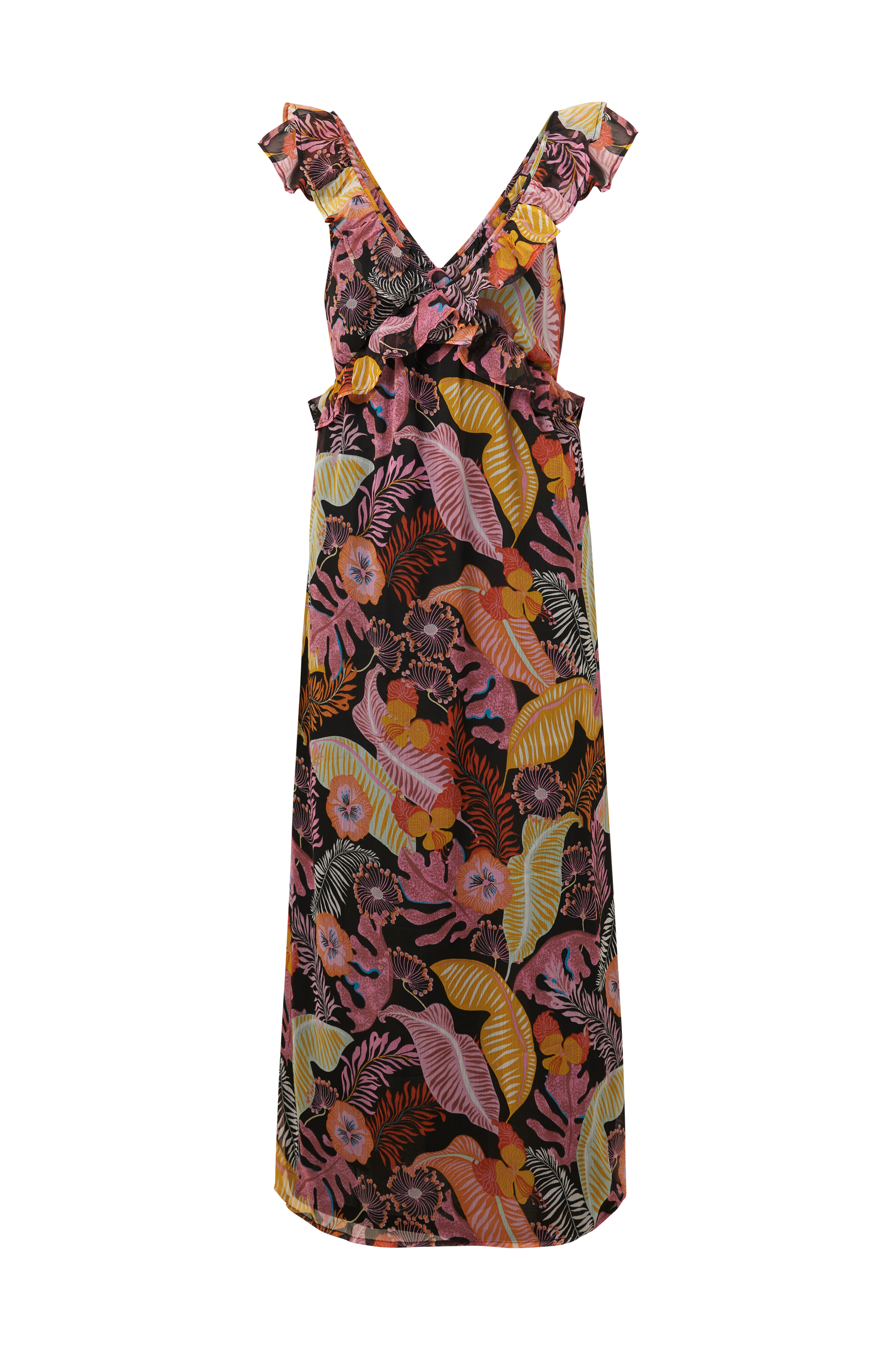 • Kjole i chiffon• V-udskæring med volant• Åben ryg med snøring• Foret• Længde: 129 cm i størrelse S