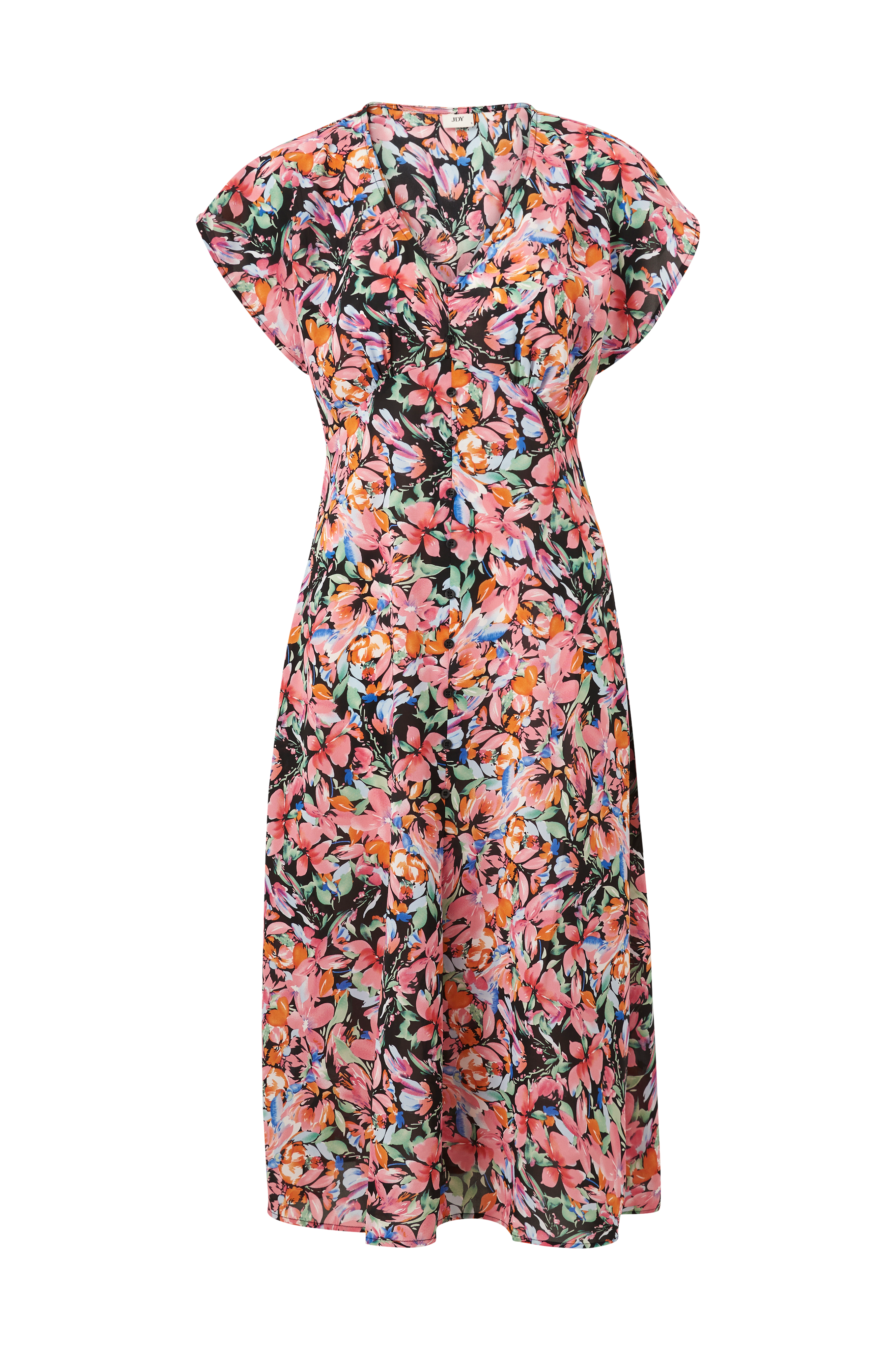 • Mønstret midikjole• V-udskæring• Korte ærmer• Dekorative knapper foran• Længde: 118 cm i størrelse S
