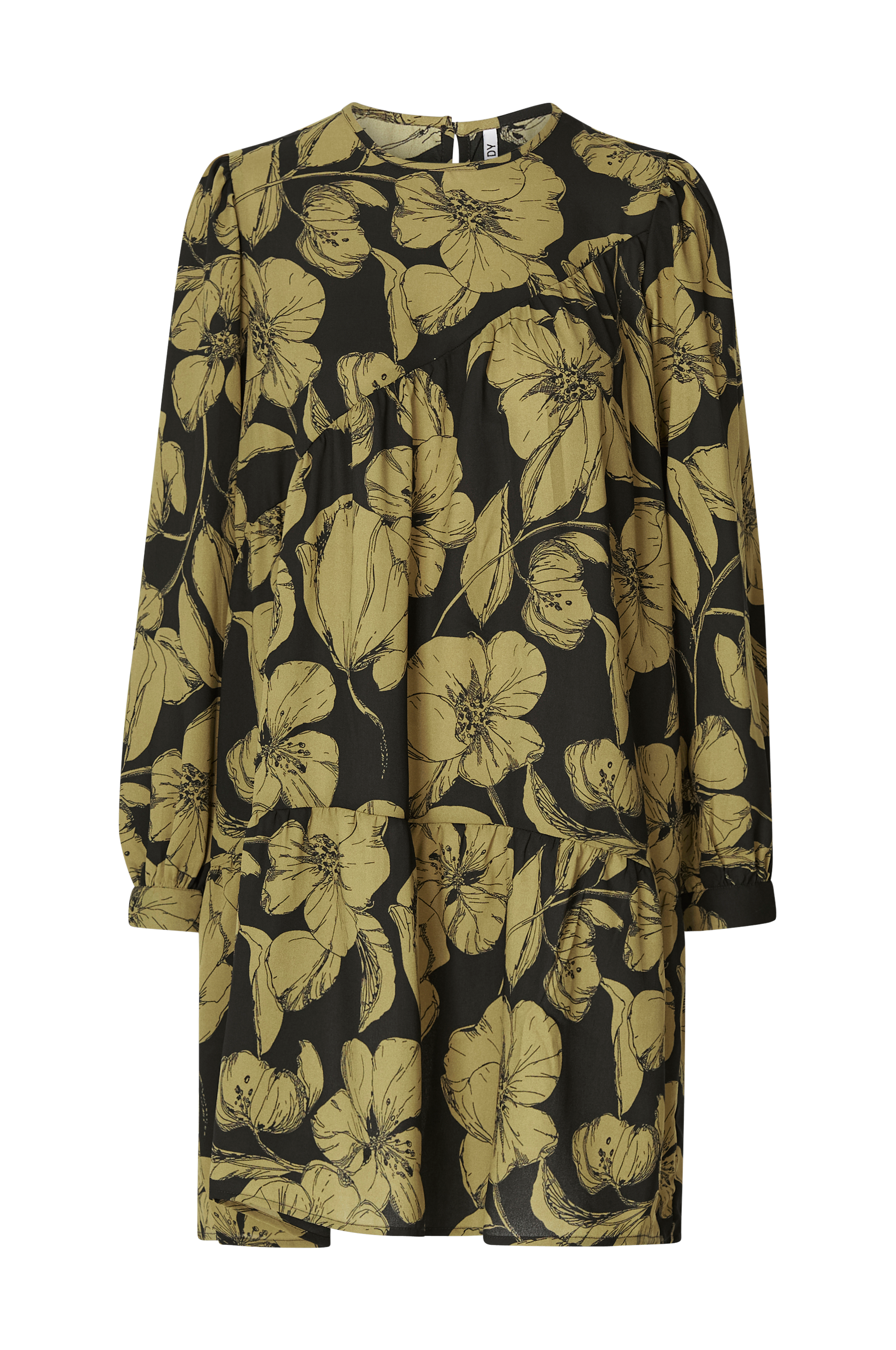 • Kort kjole• A-linje design• Rund hals med ventilation og knap bagpå• Lange ballonærmer med manchet• Diagonal søm foran og bagpå• Volant nederst• Længde: 94 cm i størrelse S