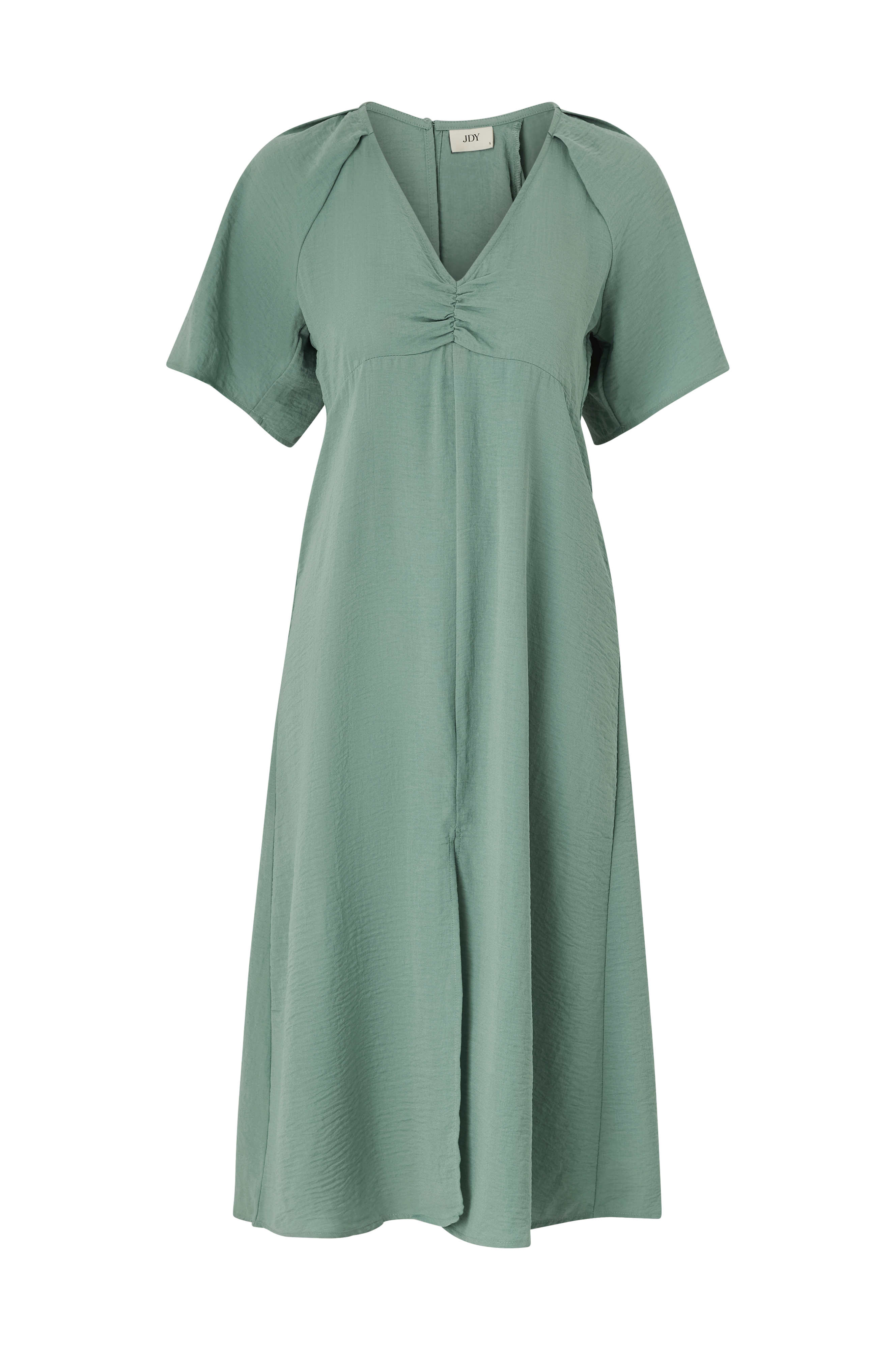 • Figurformede model• V-formet halsudskæring med samling ved brystet• Kort, bredt raglanærme med læg på skuldrene• Defineret talje• Slids nede foran• Længde: 118 cm i størrelse S