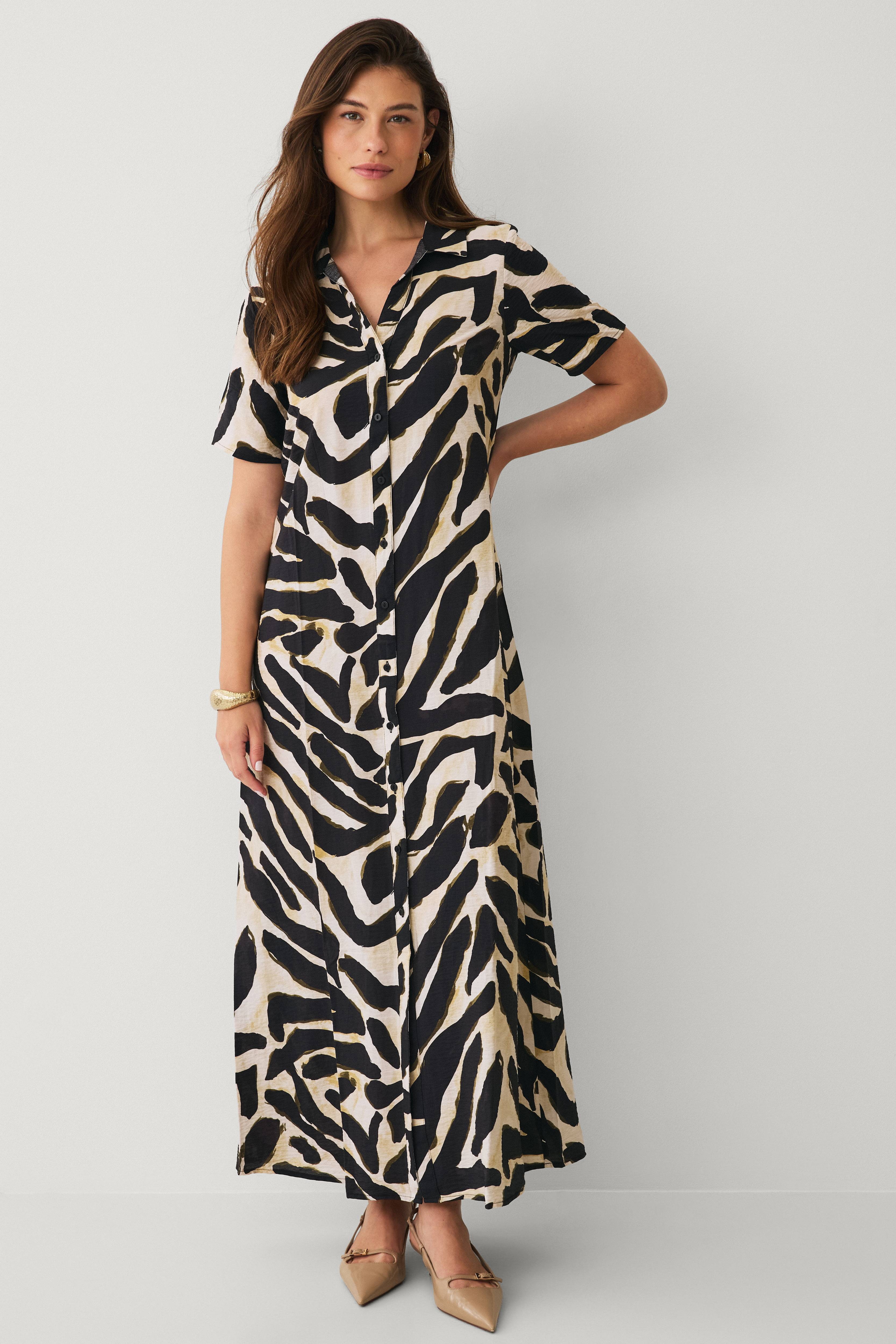 • Lang, mønstret skjortekjole i viskoseblanding