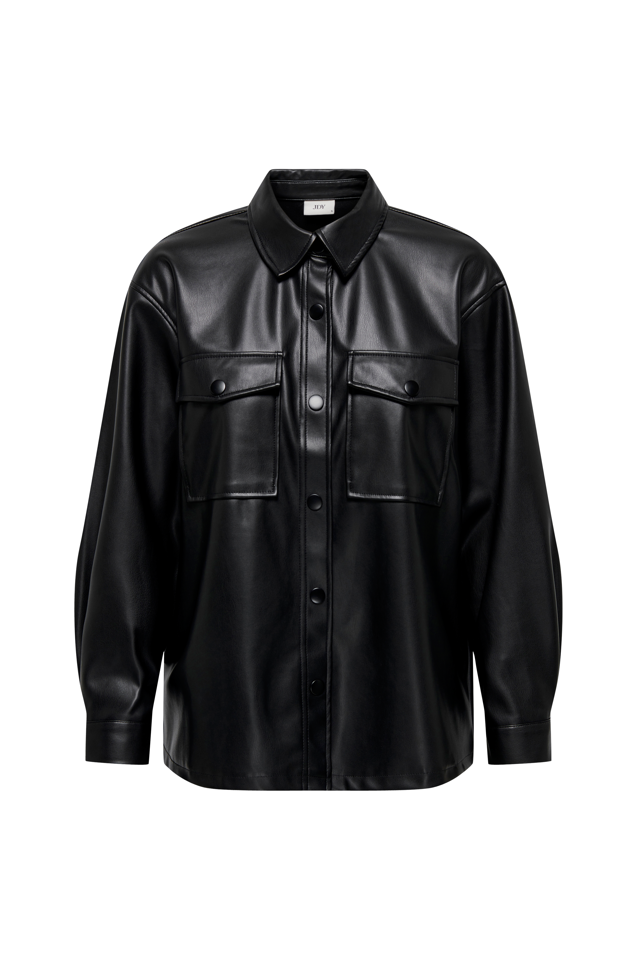 • Skjorte i imiteret læder• Trykknapper• To brystlommer med låg og trykknap• Trykknap ved manchetterne