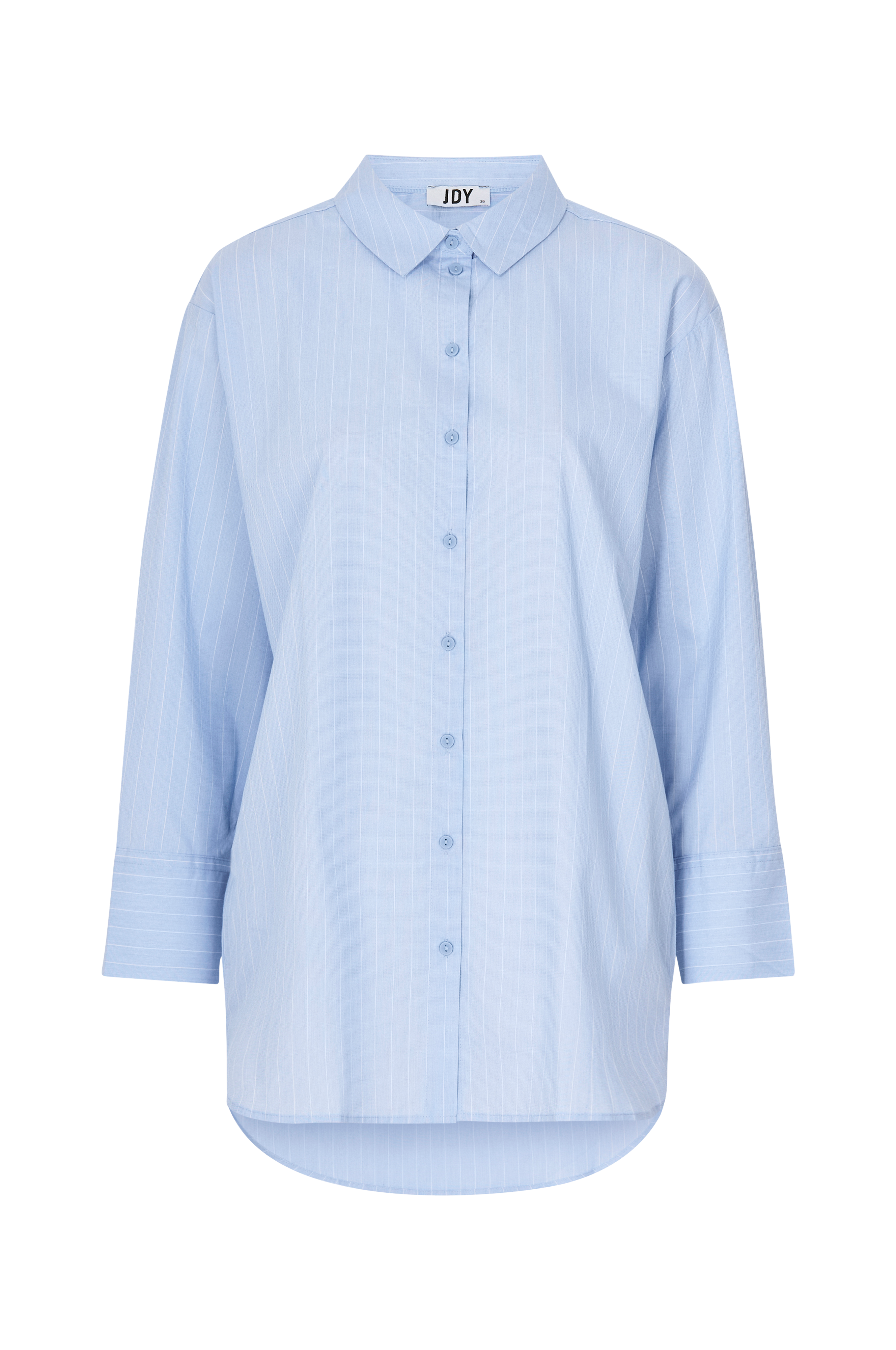 Et solidt stof af høj kvalitet, men ret langt bagfra. Det er godt, selv som en sommer skjortejakke. På grund af sin løshed kan skjorten akavet gemmes i dine bukser eller nederdel.