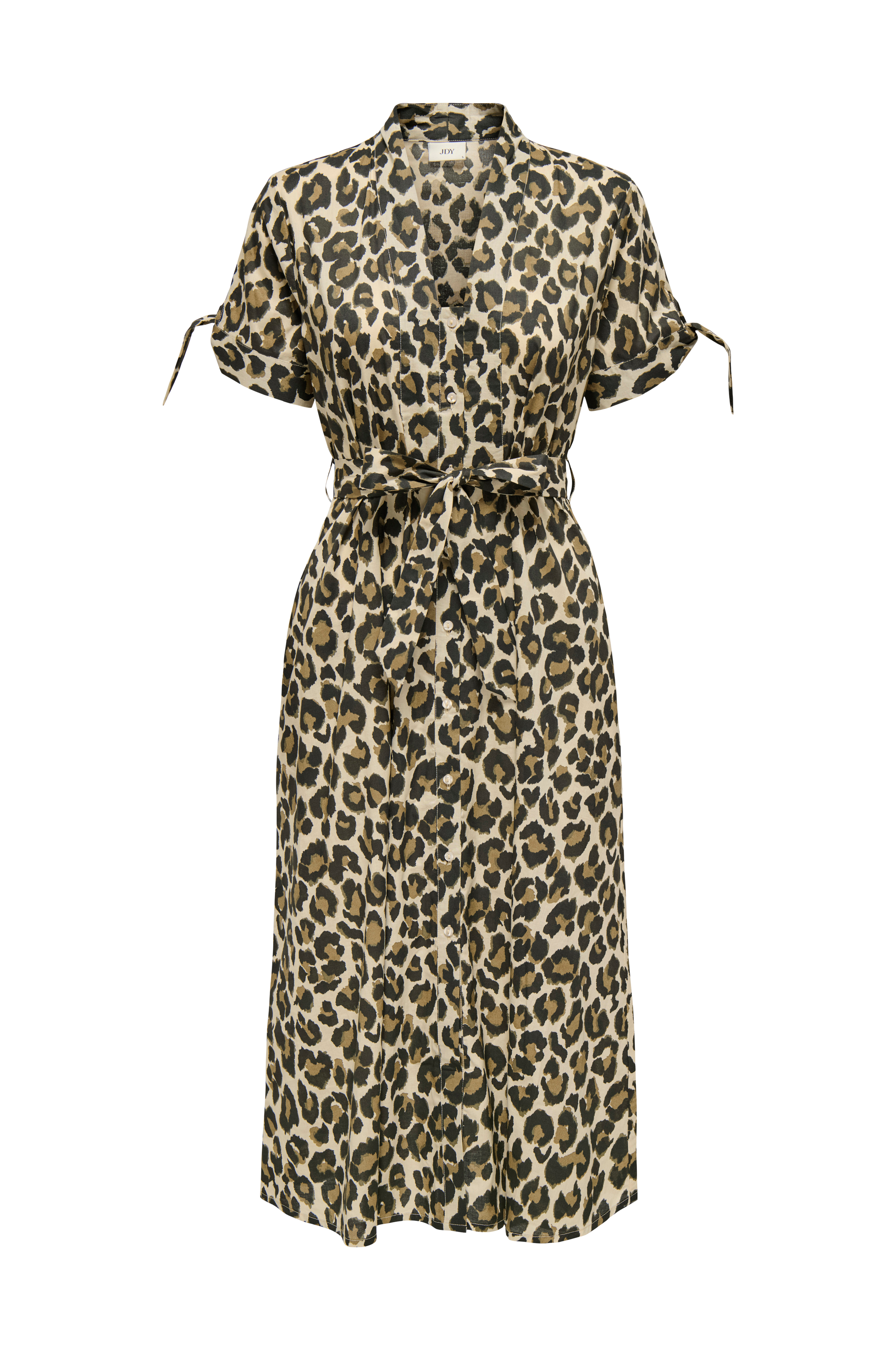 • Leopardmønstret skjortekjole i bomuld• V-udskæring• Knapper hele vejen frem• Korte ærmer med bindebånd ved ærmeafslutningerne• Aftageligt bindebælte ved taljen• Sidelommer• Slids i den ene side• Længde: 119 cm i størrelse S