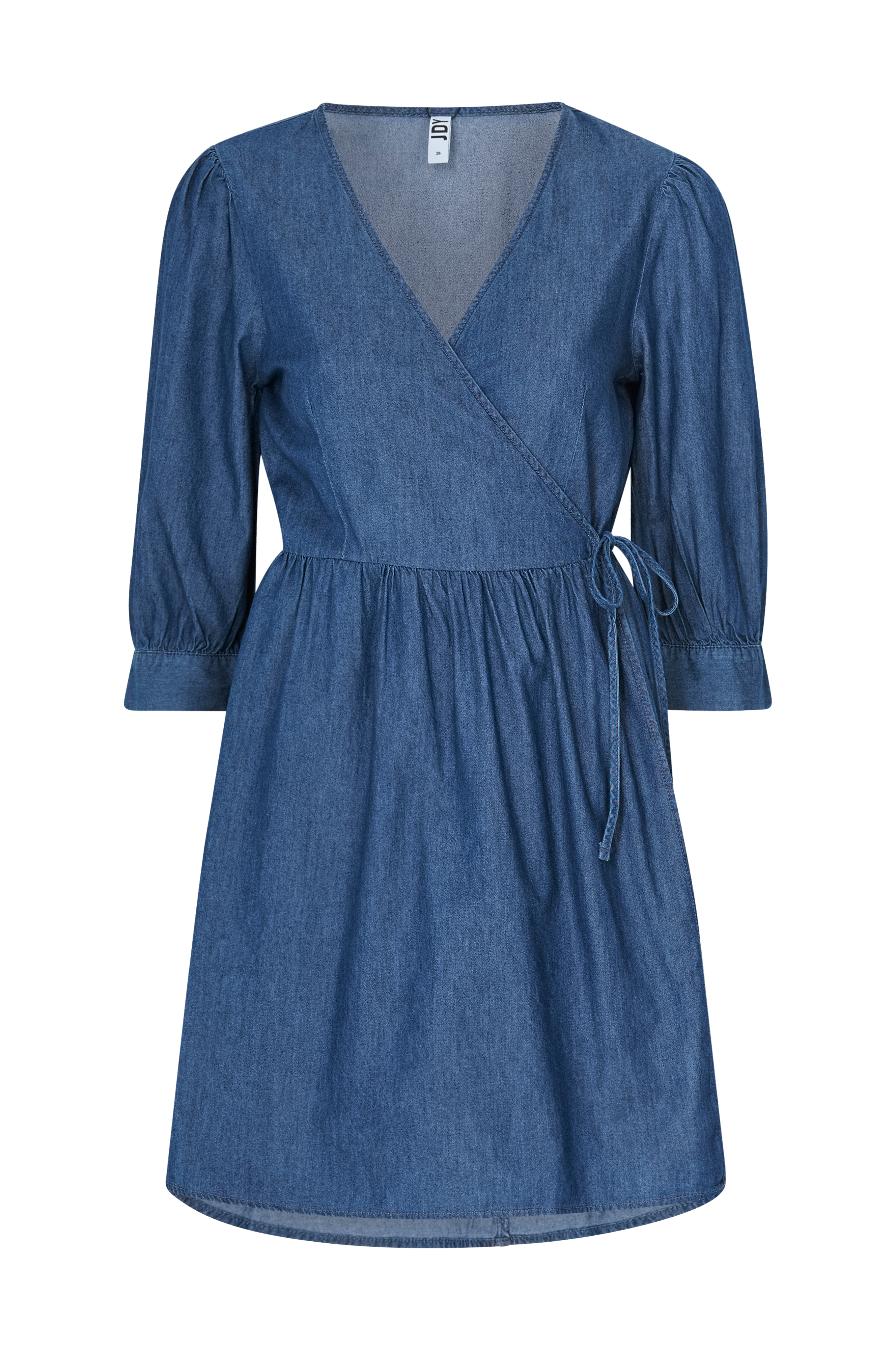 • Slå-om design med bindebånd i siden• 3/4 lange ærmer• Rynket talje• Længde: 88 cm i størrelse 36