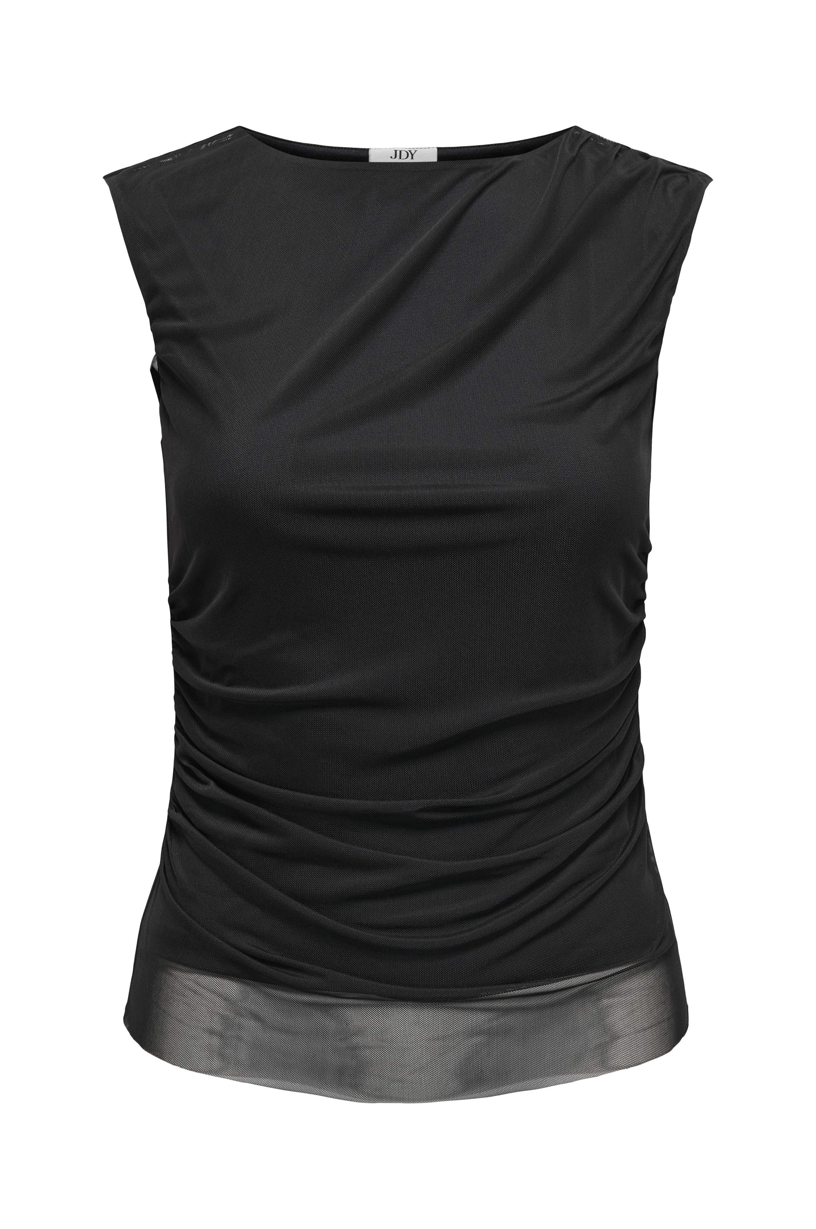 • Elastisk, ærmeløs top i mesh med for i jersey• Rund halsudskæring• Samling på en skulder• Drapering ved taljen